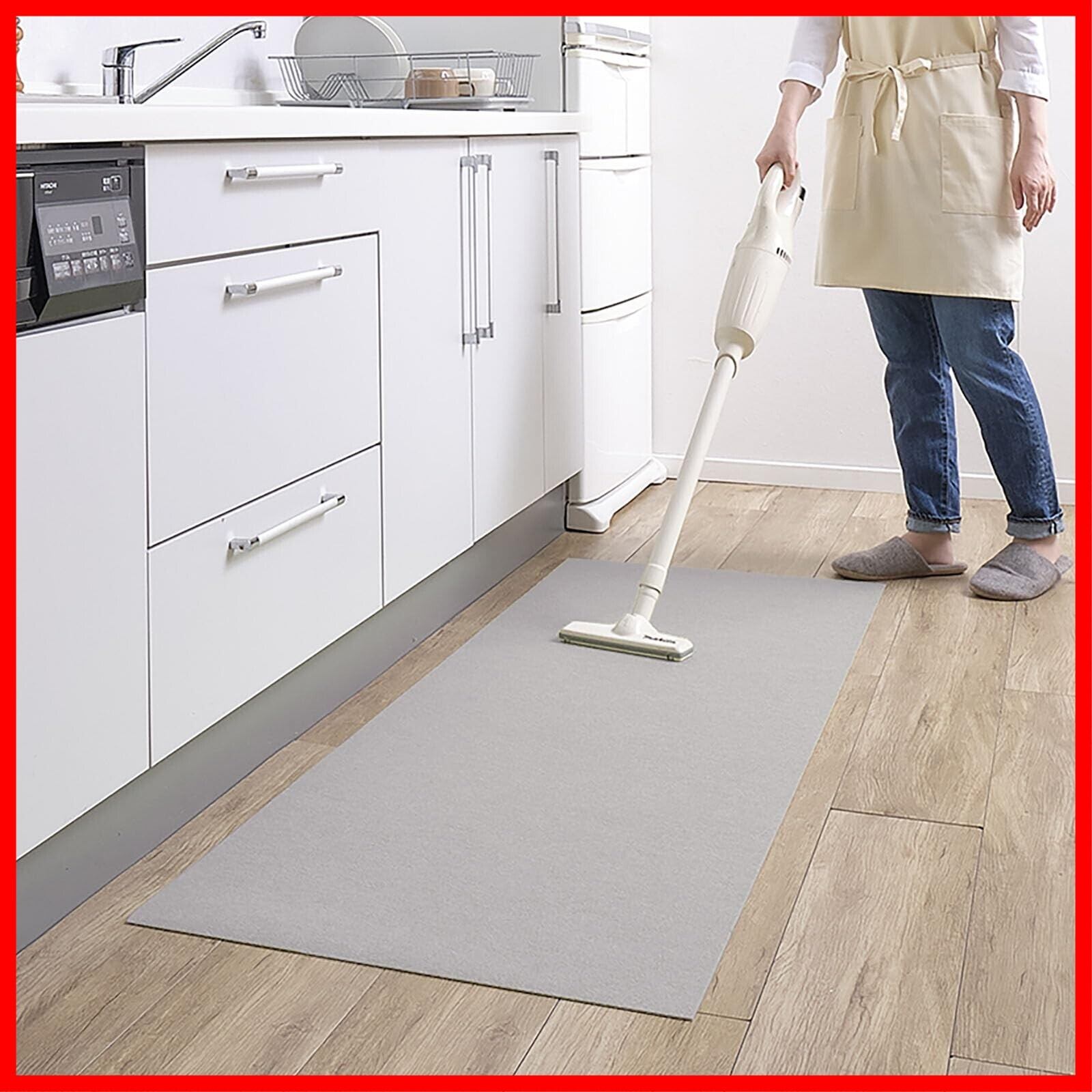 【ずれない吸着タイプ】システムキッチンに適している1枚で敷けるキッチンマット。掃除機をかけても吸い上がらない吸着力です。