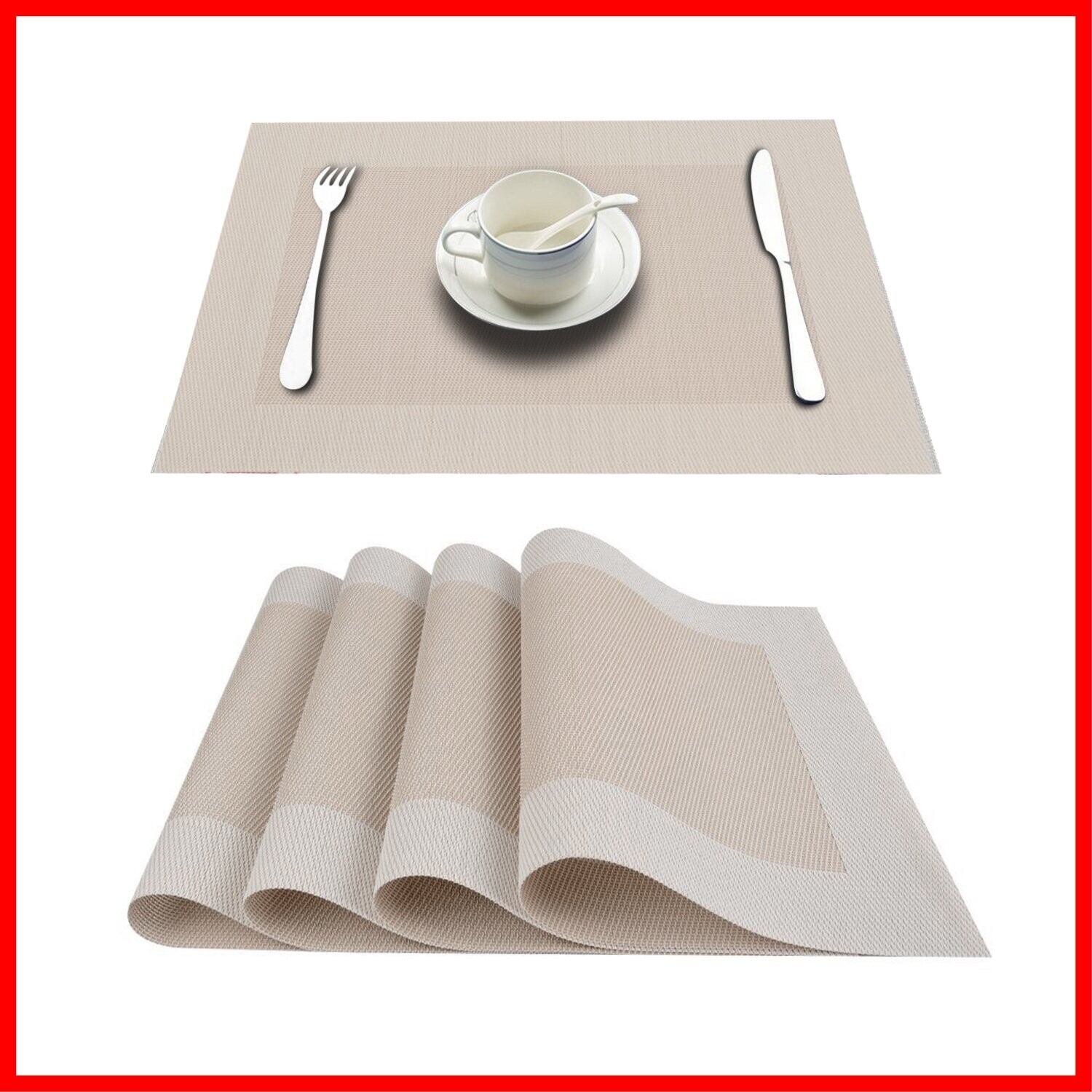 Topfinel ランチョンマット おしゃれ 北欧 全6色選択 防水 防汚 断熱 滑り止め お手入れ簡単 PVC 薄いコーヒー色×4枚