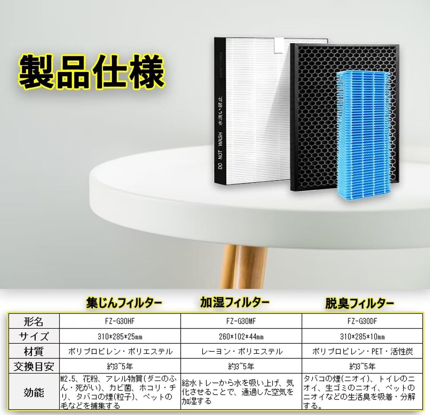 集じんフィルター FZ-G30HF 加湿フィルター FZ-G30MF 活性炭フィルター FZ-H30DF/FZ-G30DF