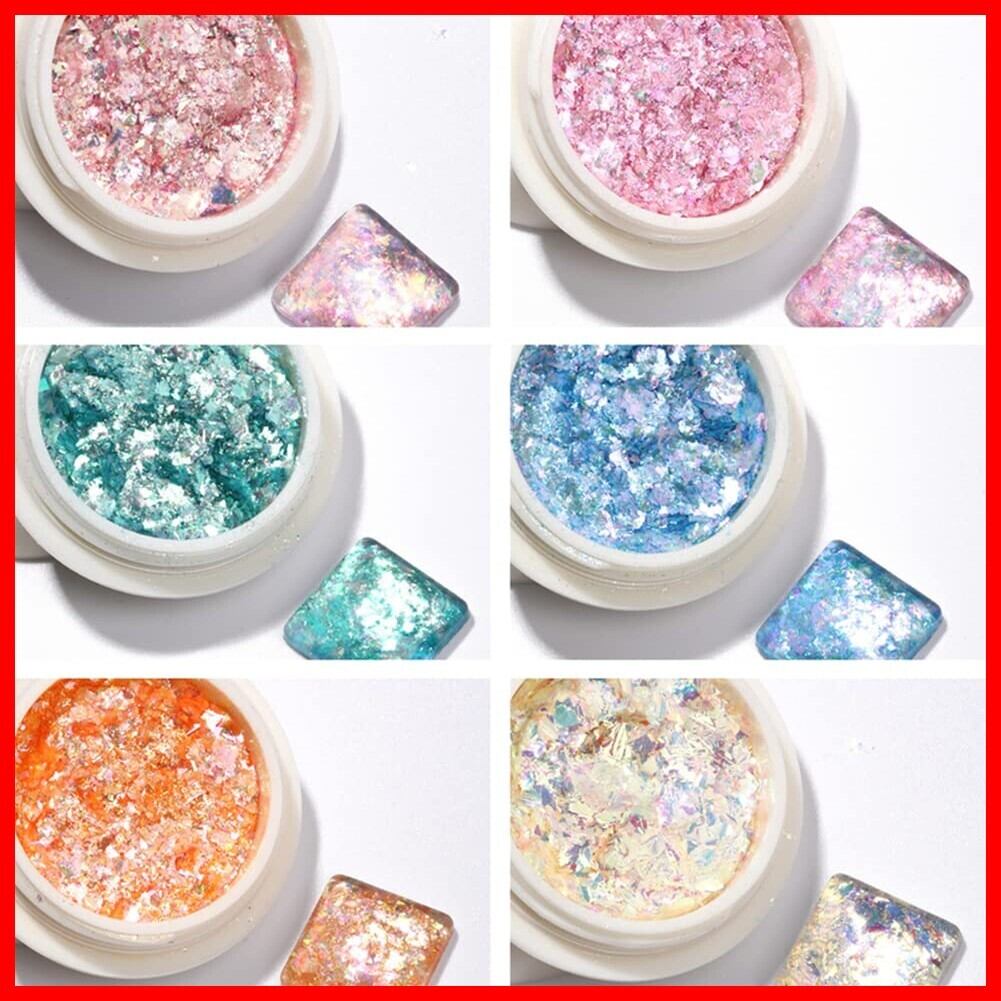 超薄&超輝き ネイルホログラム オーロラレインボーマイカフレーク ネイルホロパーツジェルネイルレジン用 ネイルアートパウダー (6色セット)