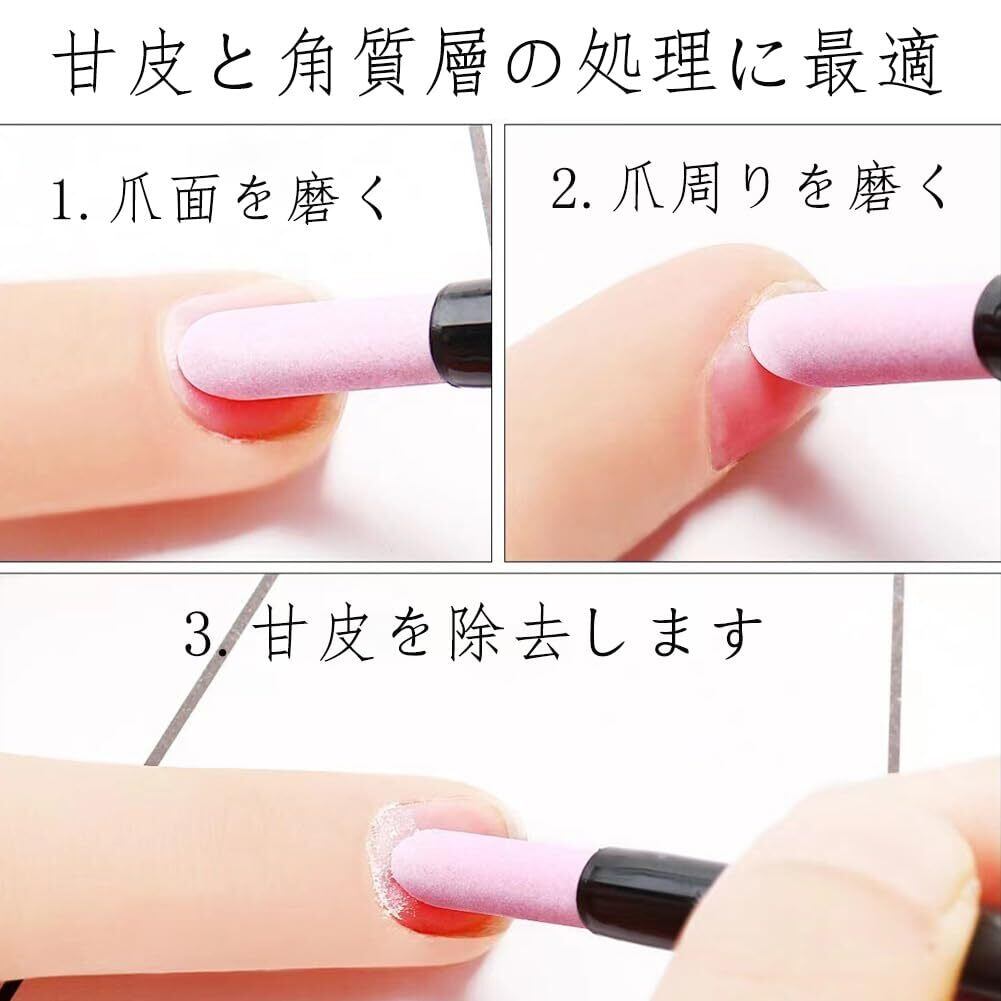 使いやす:丸い持ち手は握りやすくて操作がより簡単です。 さらに、このペン型研磨棒は爪を傷つけることなく細かく研磨する特徴があり、爪の周りの死皮や角質層を安全に素早く除去しやすく、より安心して使えます。ジェルネイル前の甘皮のお手入れに適しています。