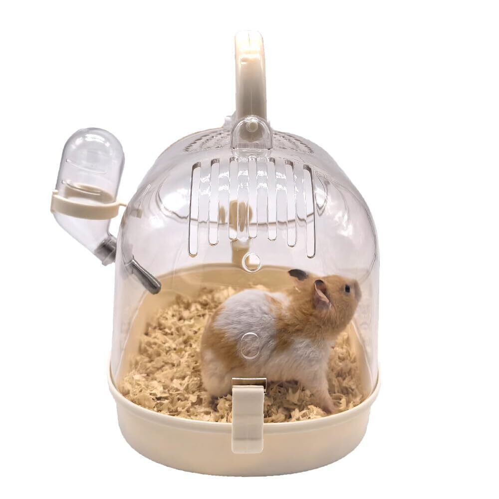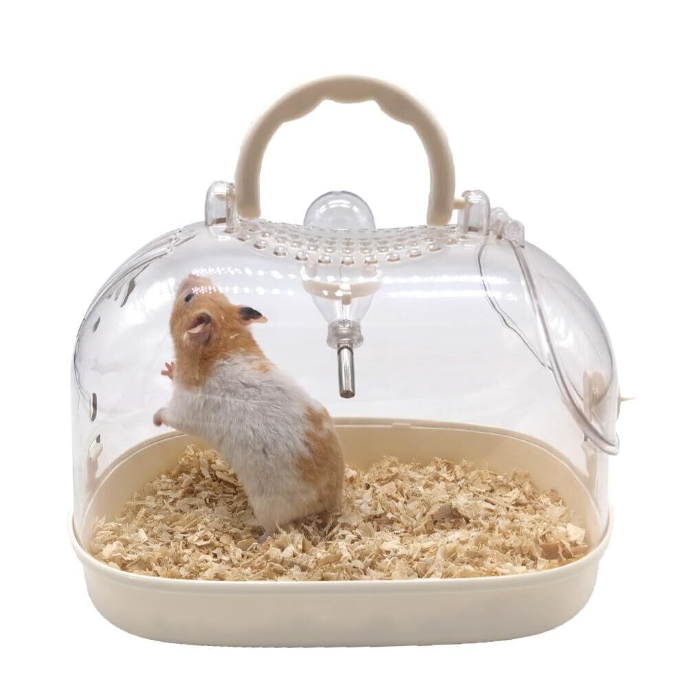 [ハムスター キャリーケース 透明 小動物 キャリー ケージ 大きめ ジャンガリアン キンクマ お出かけ 持ち運び プラケース 移動 帰省 通院(給水器付き)]