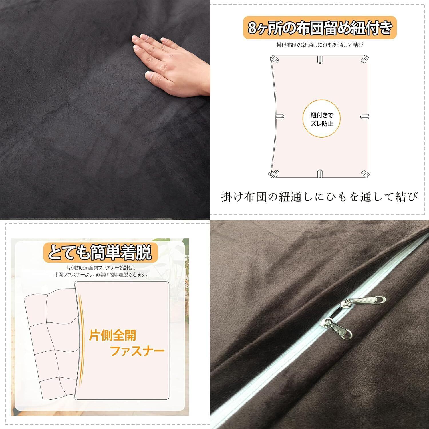 【全開ファスナー&スナップボタン式で簡単!】:片側に全開ファスナー使用、簡単着脱できます。8箇所のスナップボタンでしっかり固定します。眠っている間に動いてもズレたり丸まったりする煩わしさがありません。よりズレにくく、着脱もしやすく、お手入れが簡単なので、忙しい主婦の強い味方です。