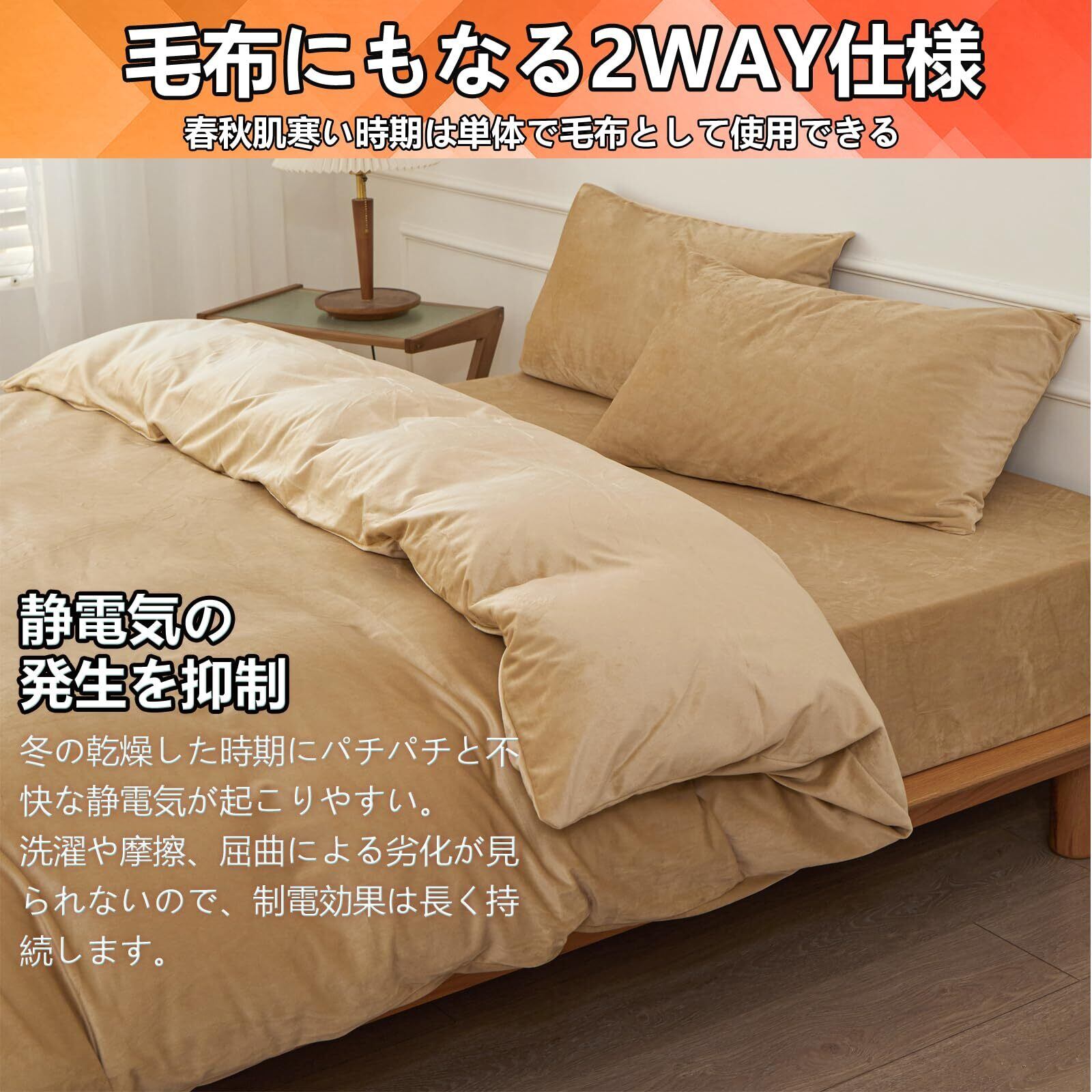 掛け布団カバー セミダブル あったか 秋冬用 極細マイクロファイバー 吸湿発熱 速乾 静電気防止 かけ布団カバー 毛布にもなる2WAY仕様 布団掛けカバー 掛けふとんカバー 静電気防止 抗菌防臭 8ヶ所紐付き (掛け布団カバーセミダブル:170x210cm, キャメル)