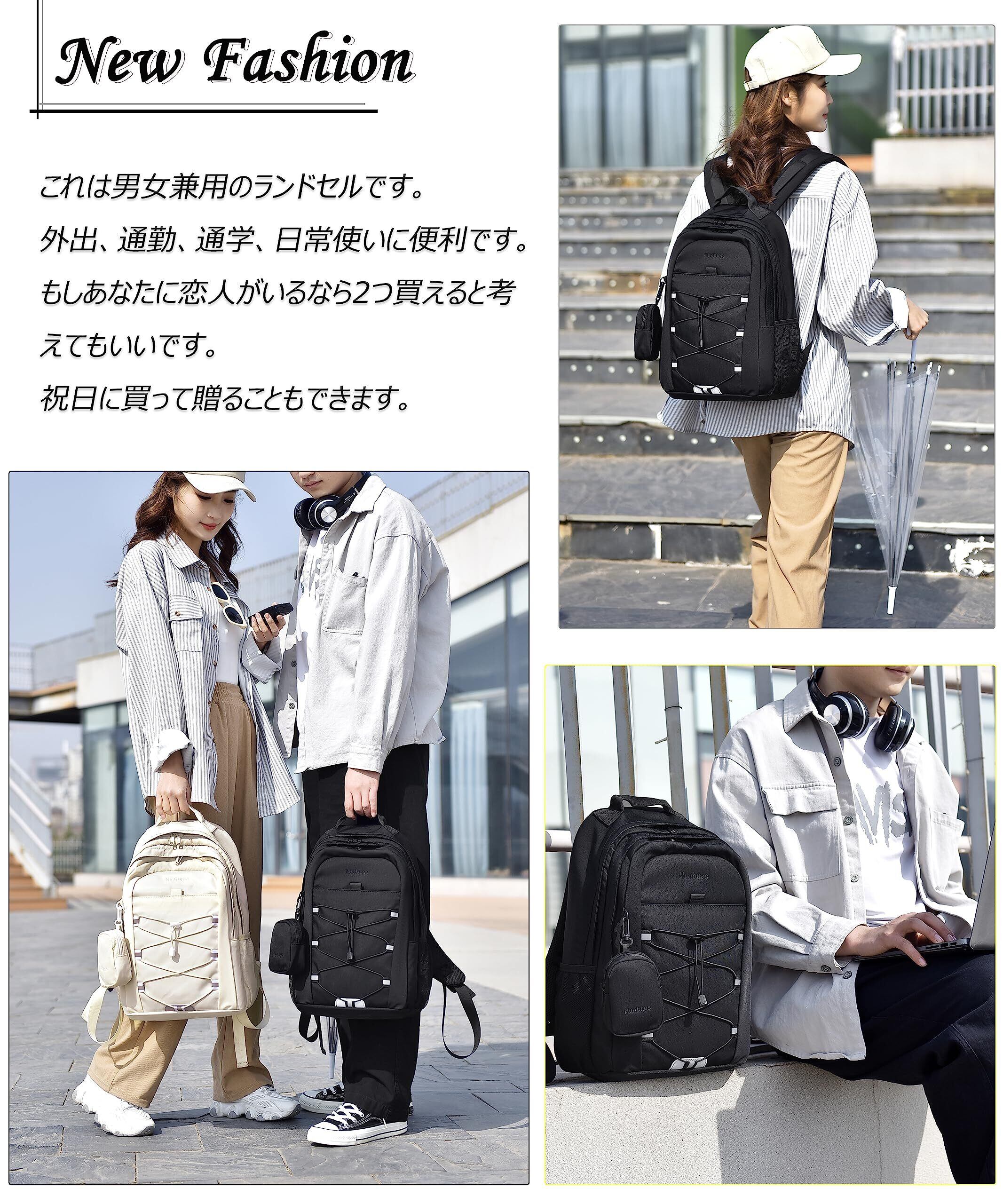 このリュックは、使いやすさを追求した多機能デザインが魅力です。複数のポケットが備わっており、小物整理が簡単にできます。ラップトップ用の専用ポケットもあり、大切なデバイスを安全に持ち運べます。