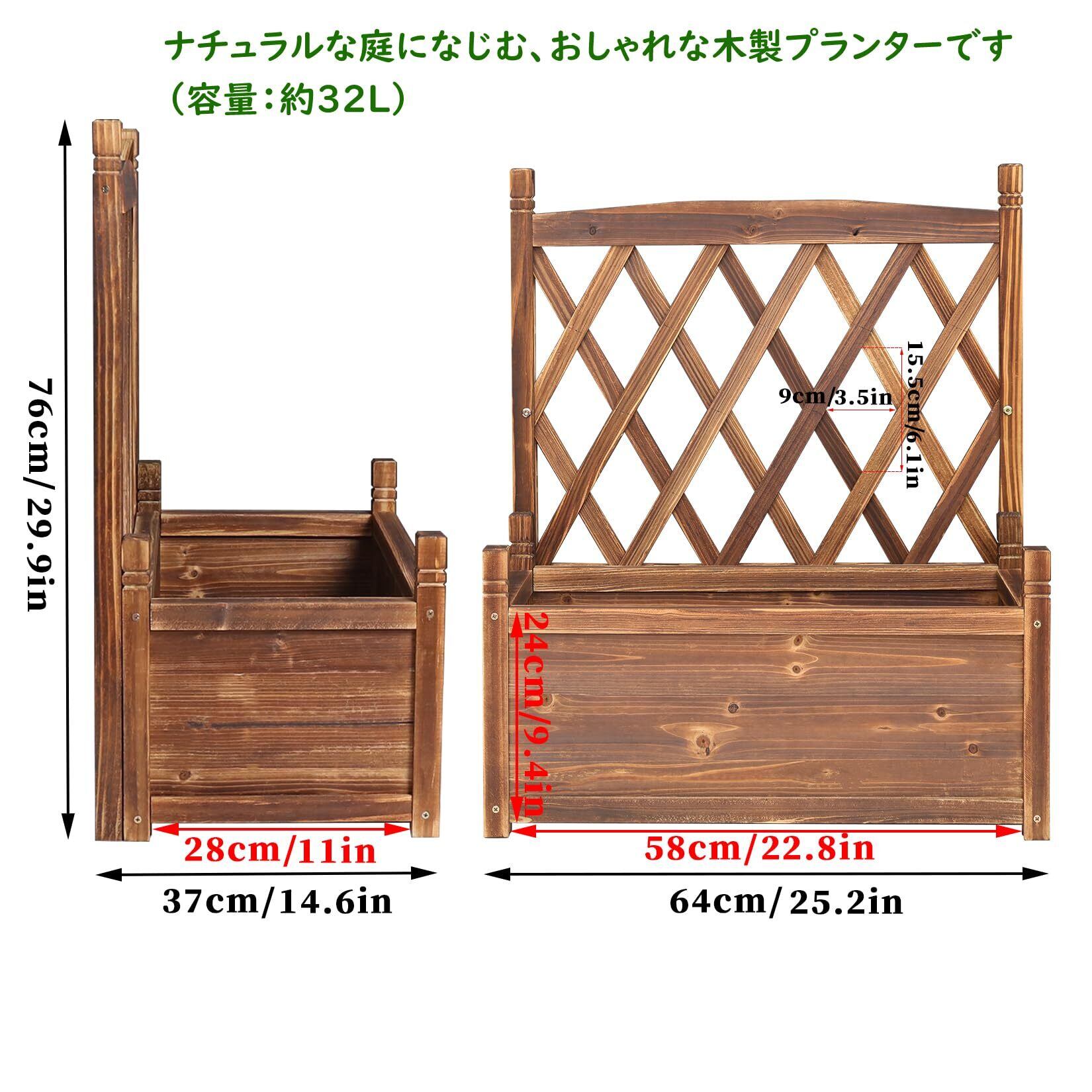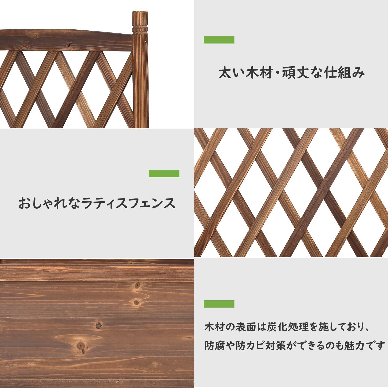 Susire プランター付きフェンス 目隠し 木目 高さ80cm プランターボックス ラティス 木製プランター おしゃれ 長方形 大型 ベランダ バルコニー 屋外 焼杉