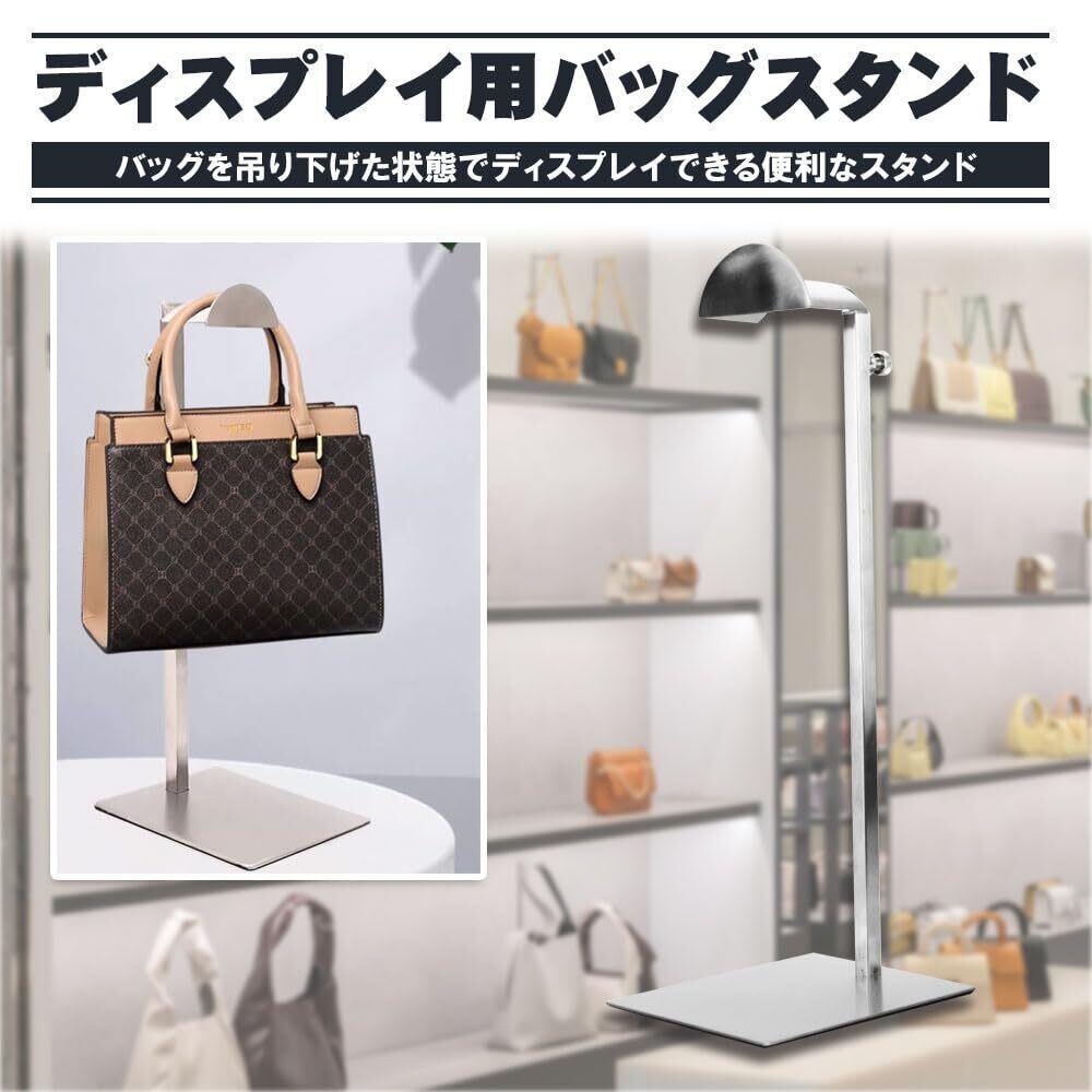 【セット内容】バッグスタンド×1点 六角レンチ×1点 【サイズ(約)】土台:14cm×12cm 高さ:35cm~60cm 【カラー】シルバー