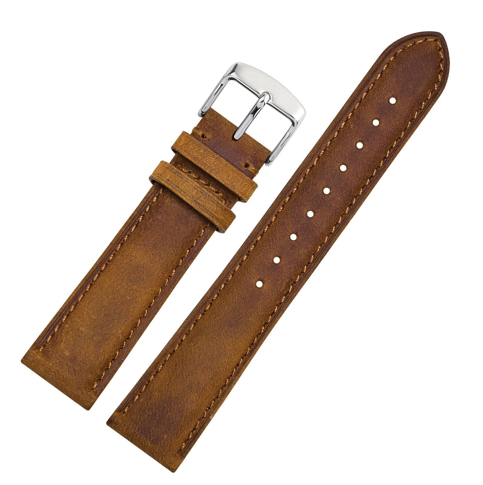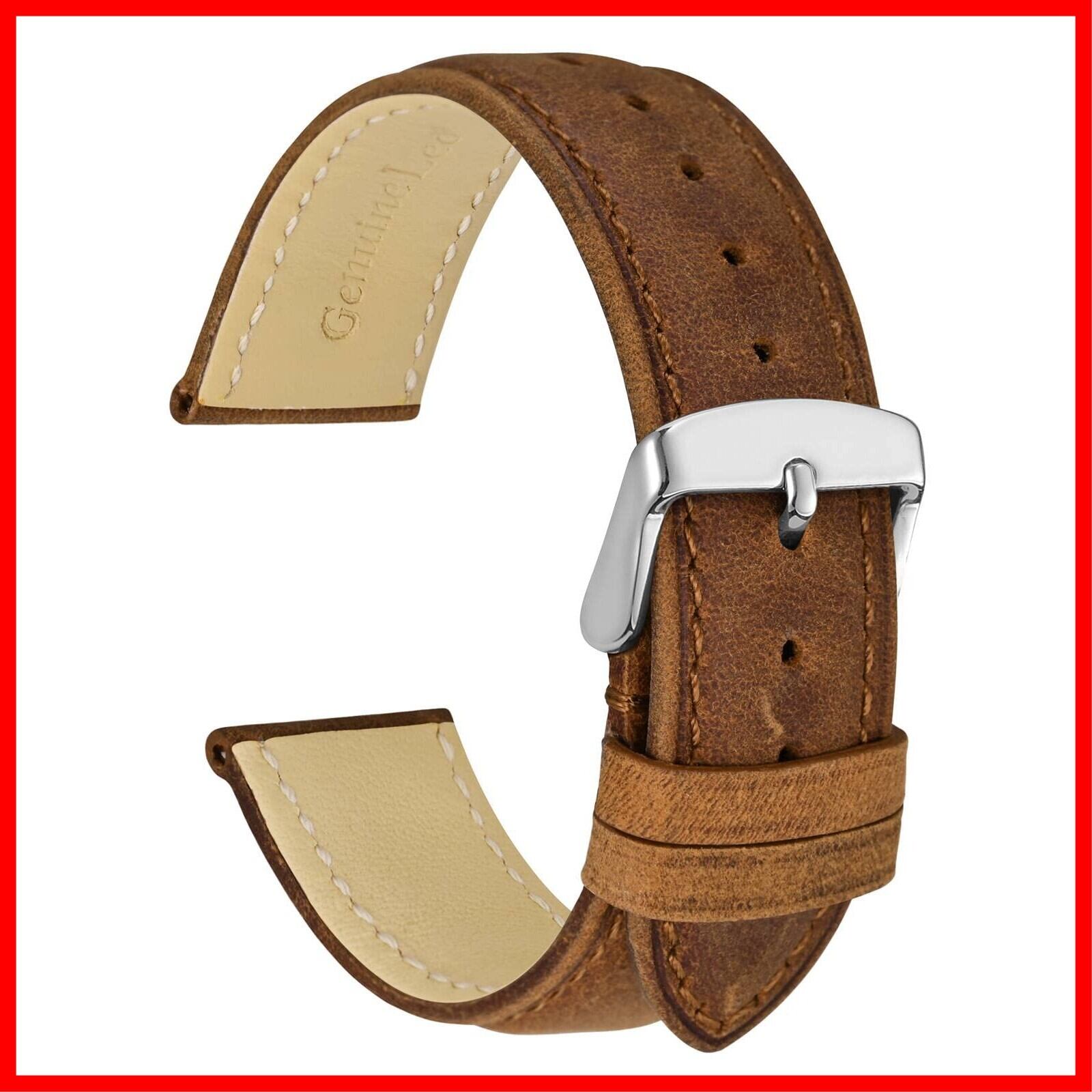 [WOCCI] 本革時計バンド 18mm 19mm 20mm 21mm 22mm 23mm 24mm カーフレザー 腕時計交換ベルトブラウン 調整工具とバネ棒付き