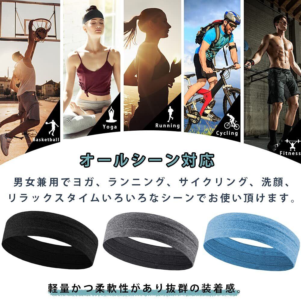 [AOIIWER] ヘッドバンド ヘアバンド 汗止め メンズ レディース スポーツターバン 伸縮性 通気性あり 薄型 軽量 無地 肌触りが柔らかい 洗顔用 髪留めらかい ランニング ダンス ヨガ ジョギング 自転車 男女兼用 3本セット