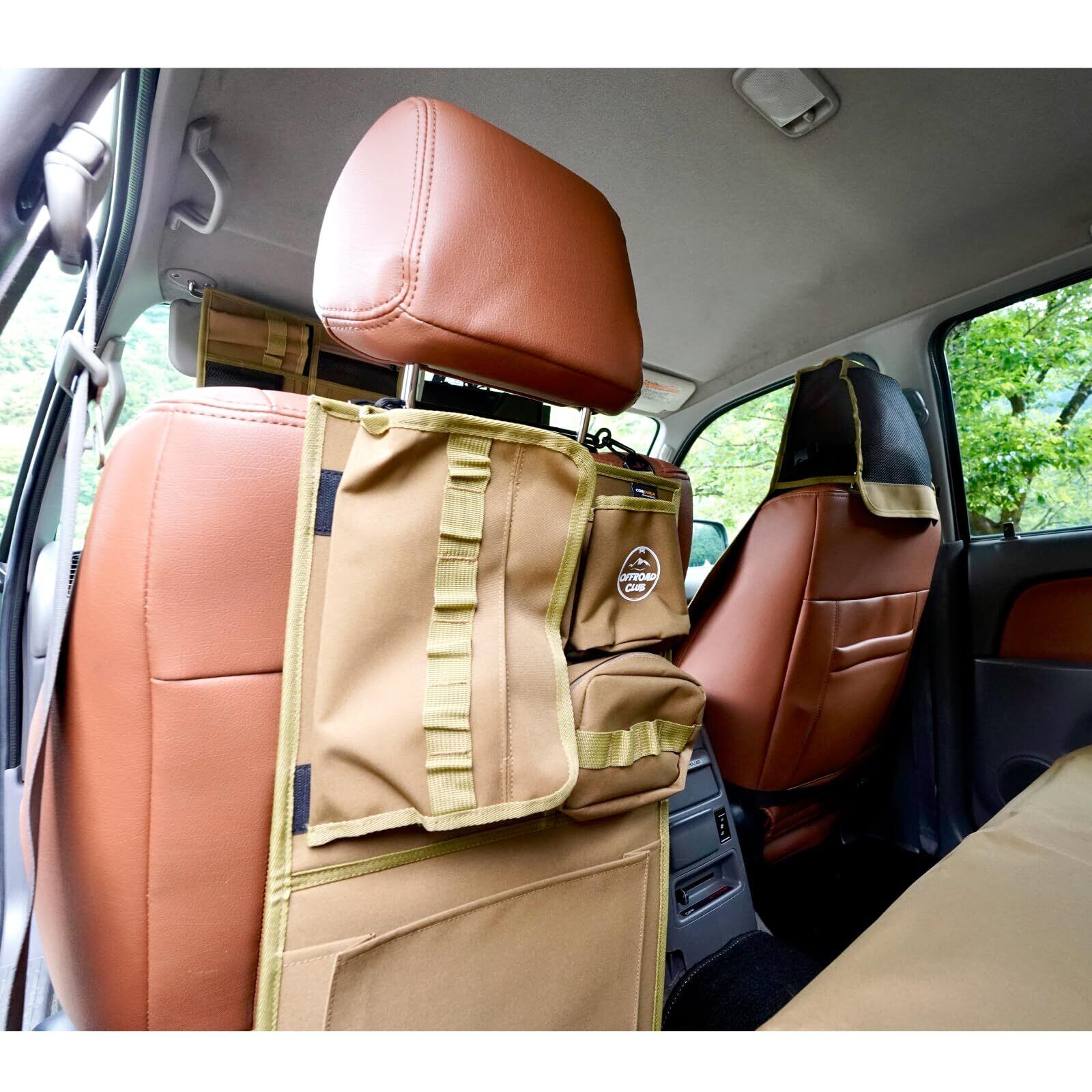 THE OFFROAD CLUB ザ オフロードクラブ シートバックポケット 車 収納ポケット シートポケット 車内収納袋 後部座席収納バッグ ティッシュボックス 小物入れ 耐久性 多機能収納 便利グッズ 車内整理 撥水防汚 PVC加工 取付簡単 汎用品【CORDURA Fabric(コーデュラ ファブリック)使用】 (ブラウン) 216-ZSAB016-BRN