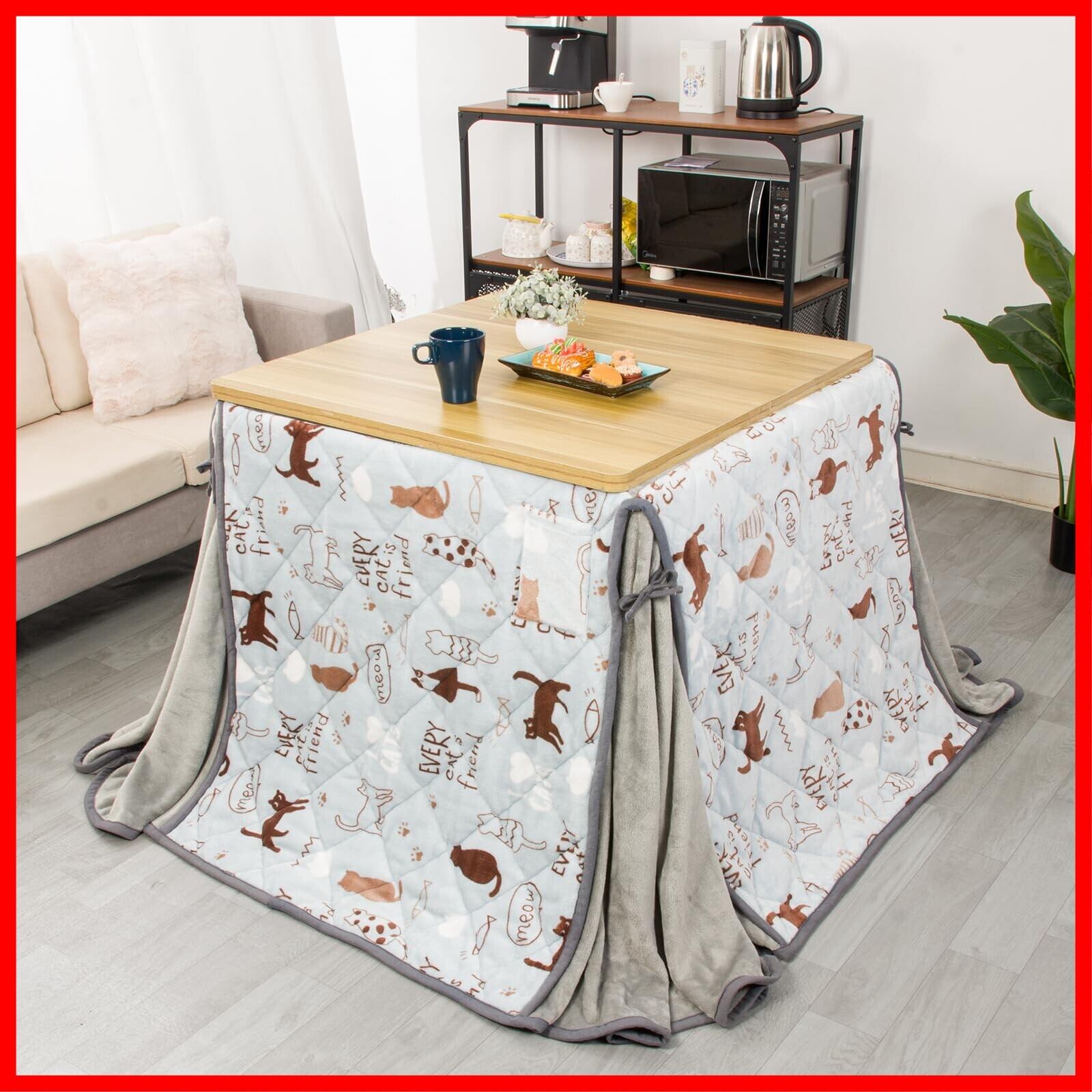 JEMA ハイタイプ こたつ布団 単品 ダイニング テーブル用こたつ布団 ダイニングコタツ布団 省スペース 長方形 掛け布団 こたつ掛け布団 吸湿発熱 洗える ふわふわ感触 フランネル素材 約240x265cm 猫柄 | hananoki