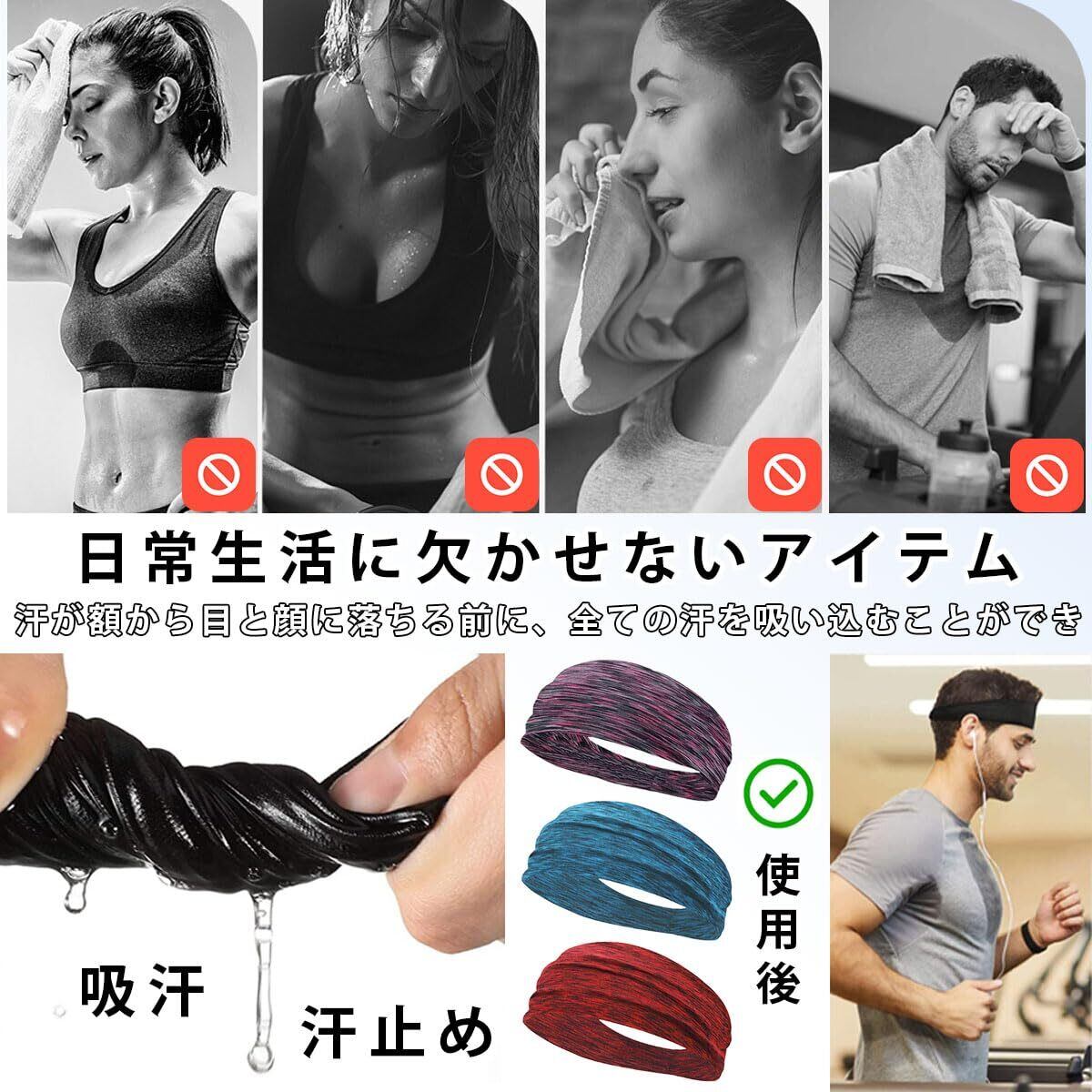 ■【視界を確保】このヘッドバンドは滑りにくく、幅広くて額を覆います。汗を吸収発散し、髪を抑えて視界をクリアにします。男女兼用タイプなので髪が長い人や女性の方がヘッドパンドを付ることでスポーッに支障が出にくく、快適にスポーッを行うことができます。前髪だけではなく、横髪も緒に東ねることができます。