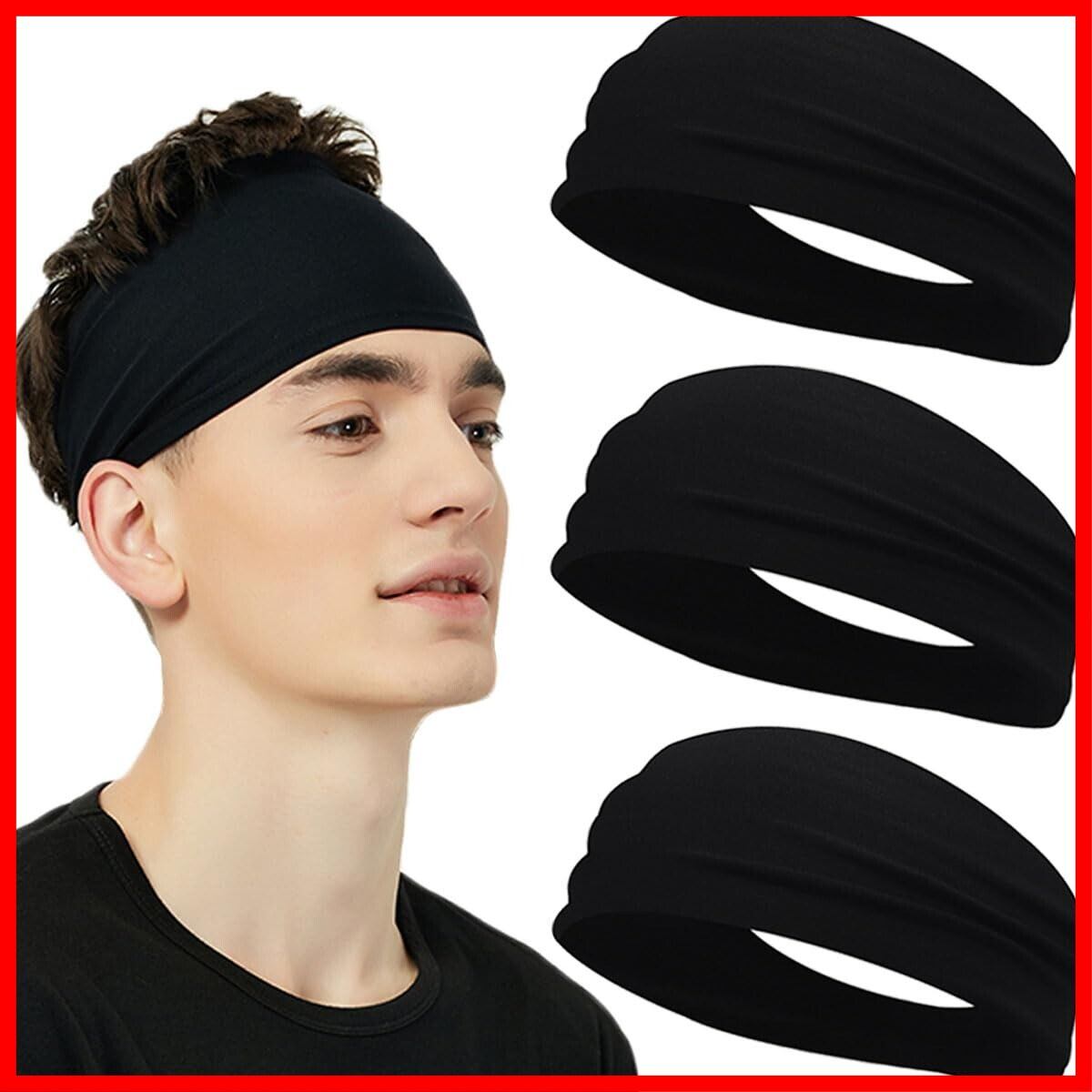 ヘアバンド メンズ レディース ヘッドバンド ヘアターバン バンダナ【スポーツ用 ・髪留め・洗顔】汗止め 吸汗速乾 伸縮性 通気性 幅広 薄型 軽量 男女兼用 3枚セット
