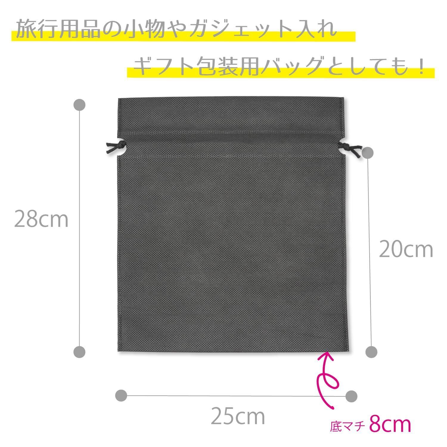 不織布 巾着 横25×縦28cm×底マチ8cm [まとめ買い10枚セット] 袋 シンプル 収納 ラッピング (ブラック)