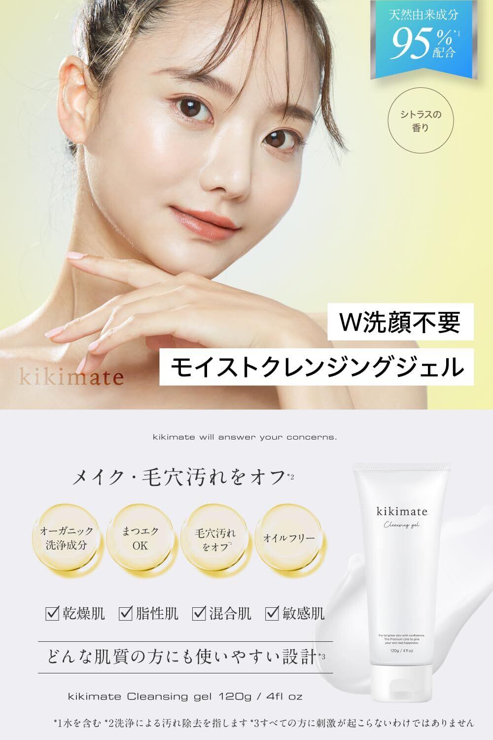 クレンジングジェル メイク落とし クレンジングフォーム【W洗顔不要 まつエクOK】 毛穴汚れ 黒ずみ用 敏感肌 乾燥肌 オイルフリー 無添加 オーガニック 保湿 120g ギフト プレゼント キキメイト