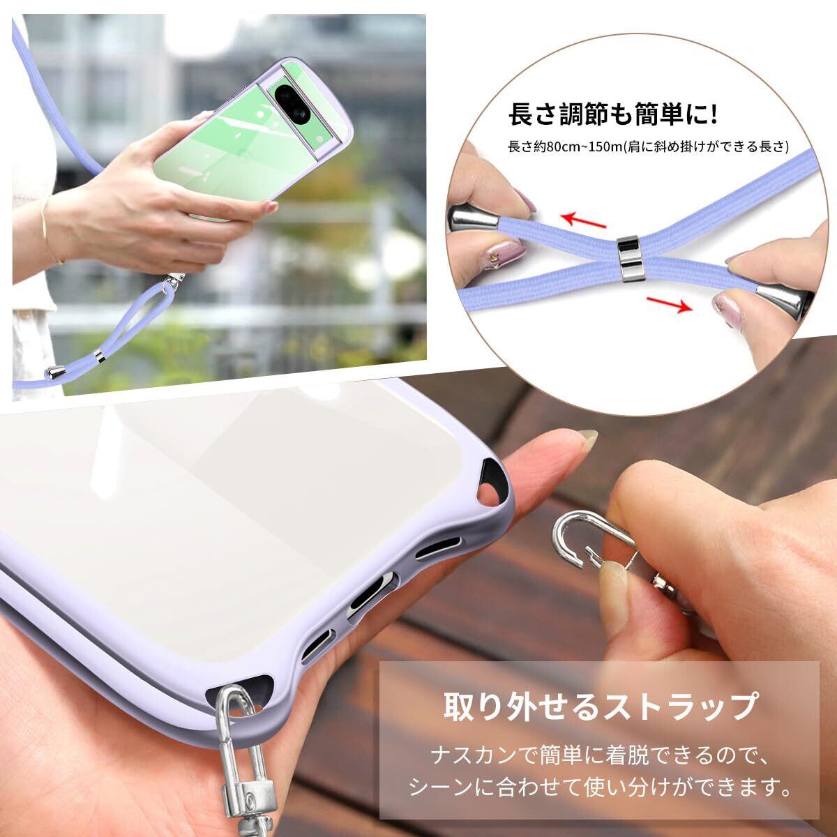 Google Pixel 8a 用の ケース ショルダー ストラップ付き グーグル ピクセル8a クリア カバー 透明 肩掛け 縄掛け 斜めかけ TPU 耐衝撃 全面保護 薄型 韓国 可愛い スマホケース (スターリバーシルバー)