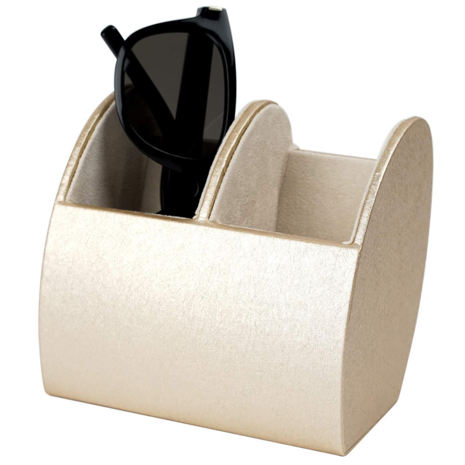●革のような柔らかい質感の合皮を合板に巻いた、2本収納することができるメガネスタンド