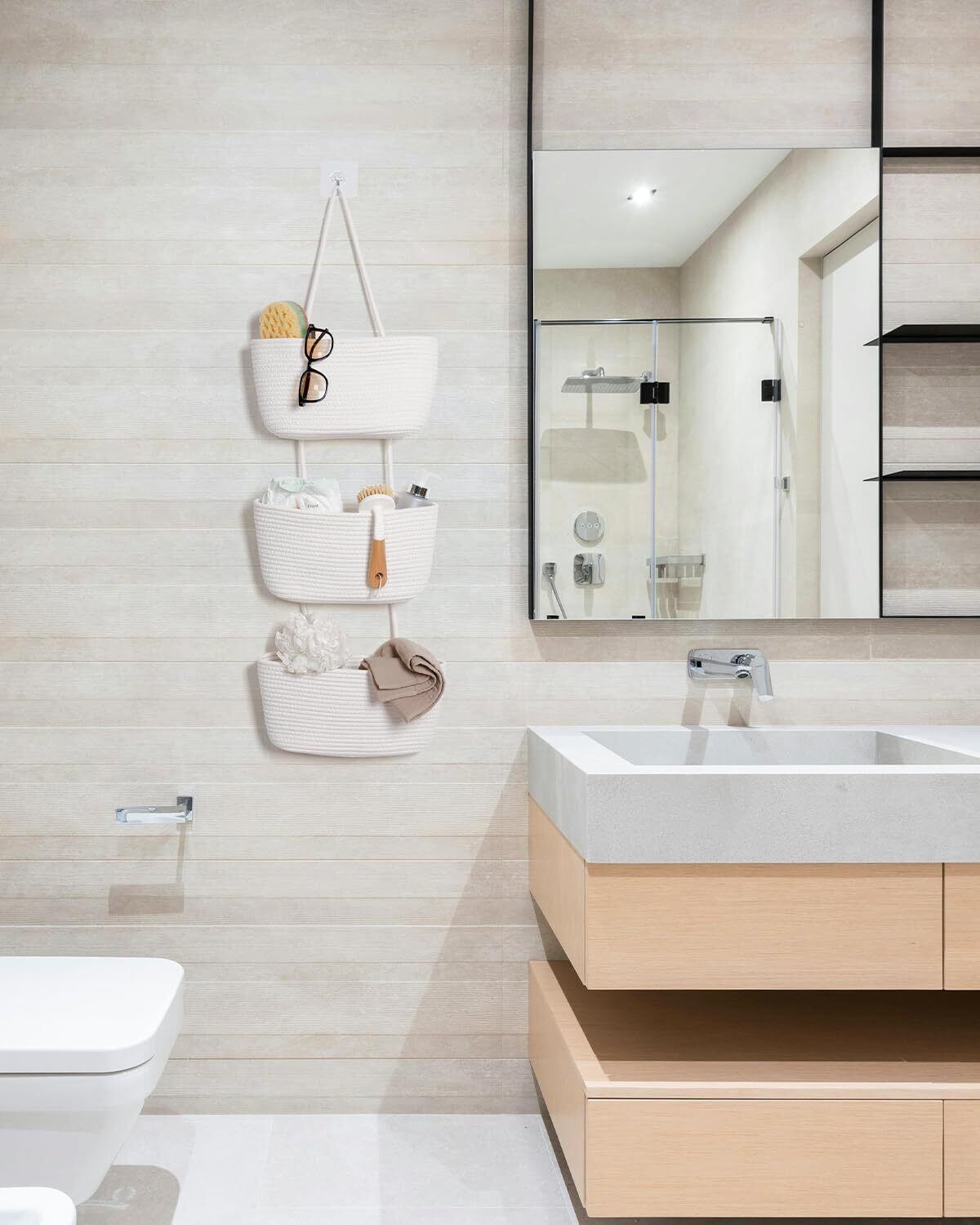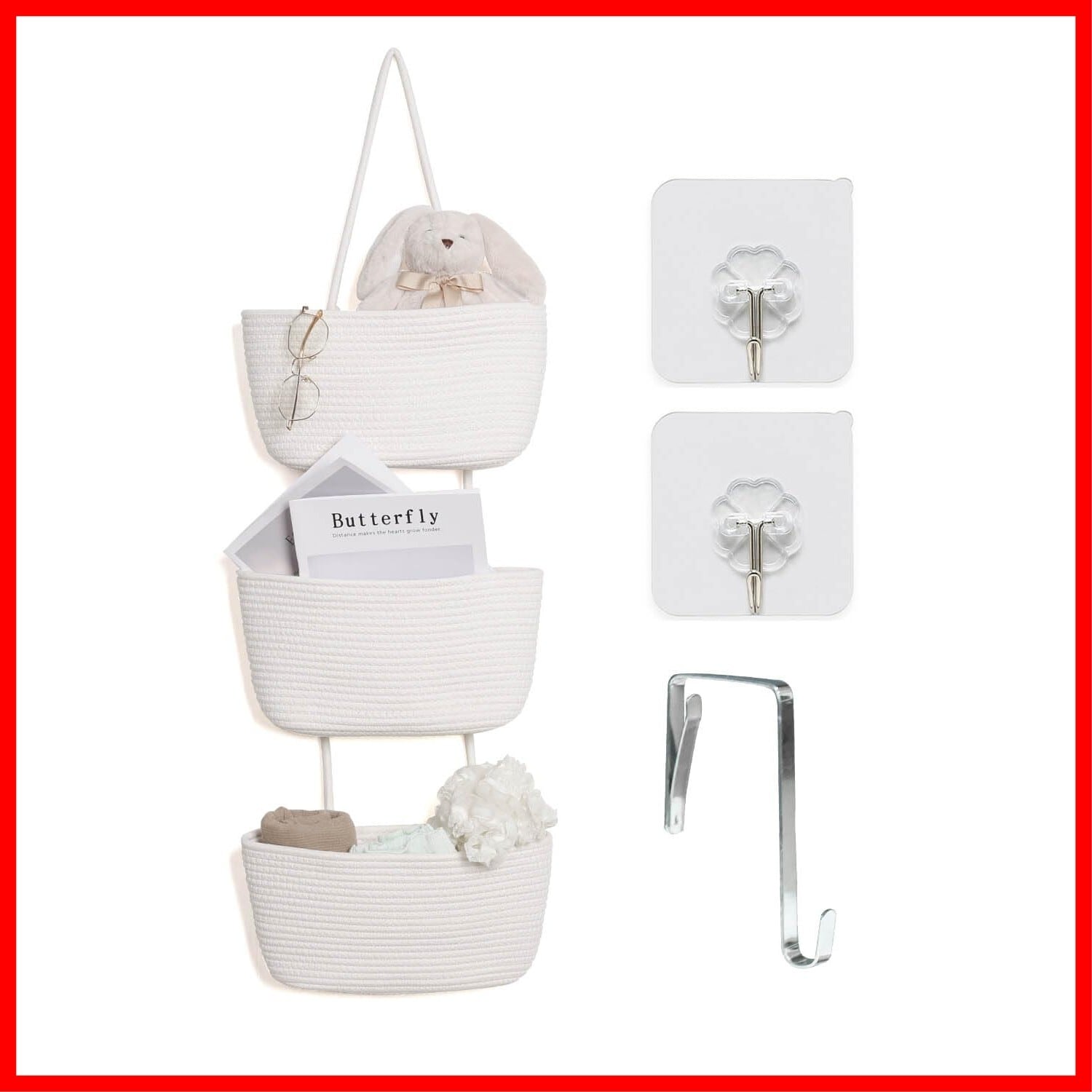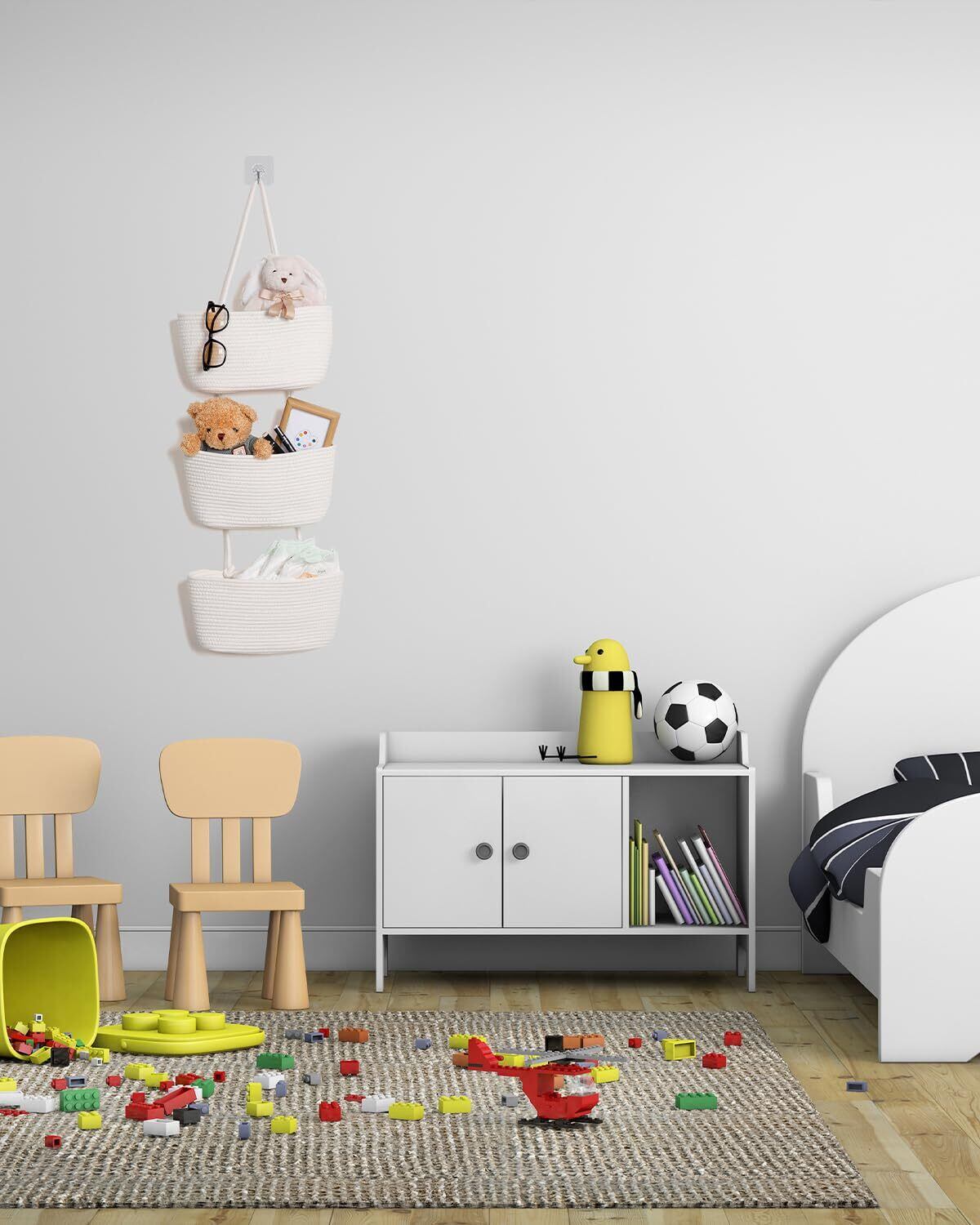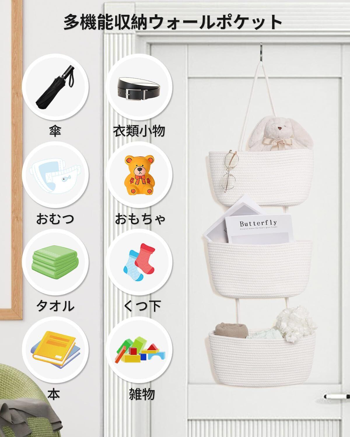 【幅広い用途】玄関、寝室、子供部屋、リビング、洗面所、トイレ、ランドリールームだけでなく、幼稚園、オフィス、教室などにも活用可能。おむつ、タオル、スキンケア用品、ドライヤー、雑誌などの吊り下げ収納壁掛けウォールとして多目的に使えます。