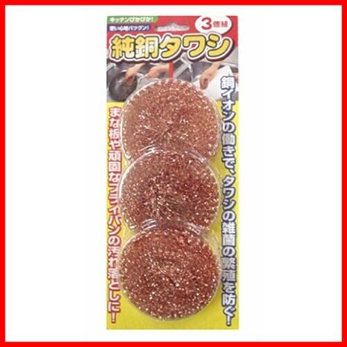 富士商 たわし 銅 キッチンスポンジ 3個入 直径9×厚さ2cm 雑菌の繁殖を防止 頑固な汚れに 純銅タワシ F4785