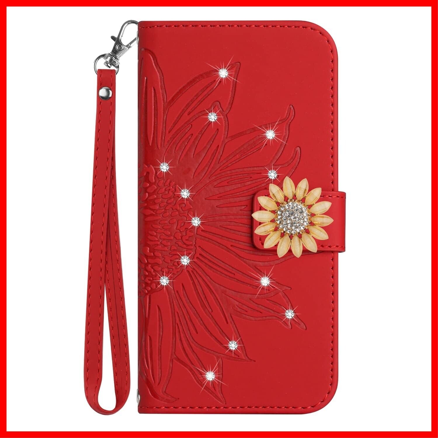 iphone 12 / 12 Pro 用 ケース 手帳型 かわいい おしゃれ 花柄 きらきら ラインストーン ひまわり 花 デザイン ストラップ 付き カード 収納 耐衝撃 アィフォン 12 / 12Pro スマホケース ハンドメイド 女性 優雅 純色 手帳ケース PUレザー 携帯カバー レット | hananoki