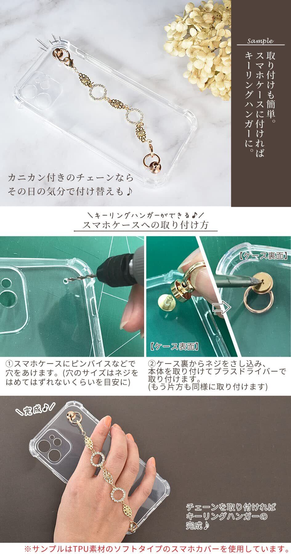 スマホケースに付ければ、