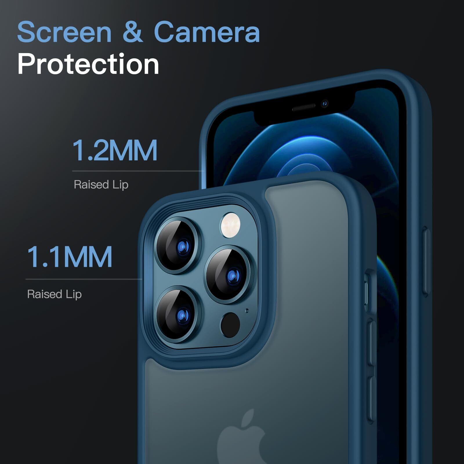 JETech マットケース iPhone12ProMax (12 Pro Max) 6.7インチ 耐衝撃性ミリタリーグレードの落下防止 つや消しの半透明の背面電話カバー 指紋防止 (ブルー)