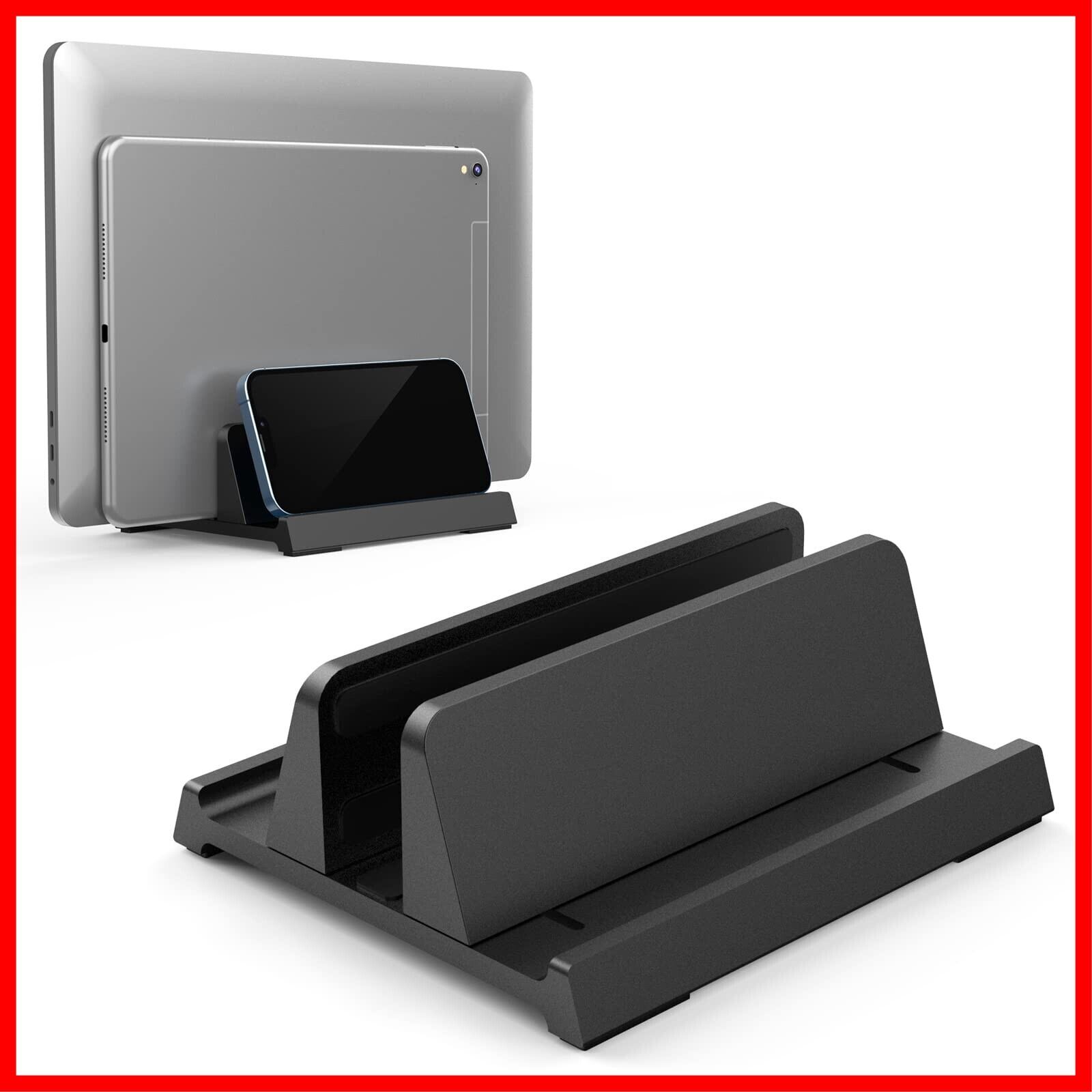 3-in-1ノートパソコンスタンド 縦置き KlearlookノートPCスタンド 卓上置き ノートパソコン1台収納 幅調節可能 六角レンチ付き 滑り止め 安定性 省スペース ABS素材 ブラック