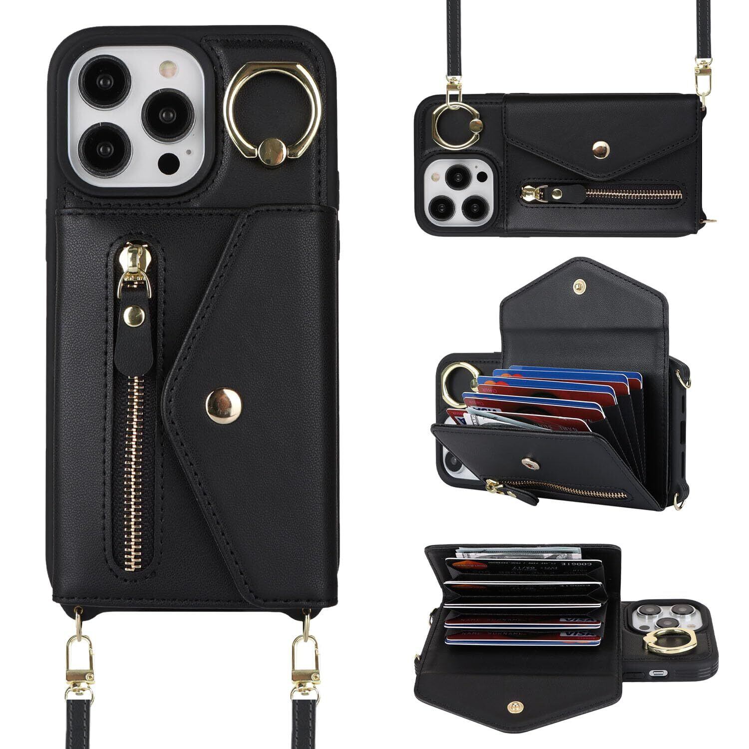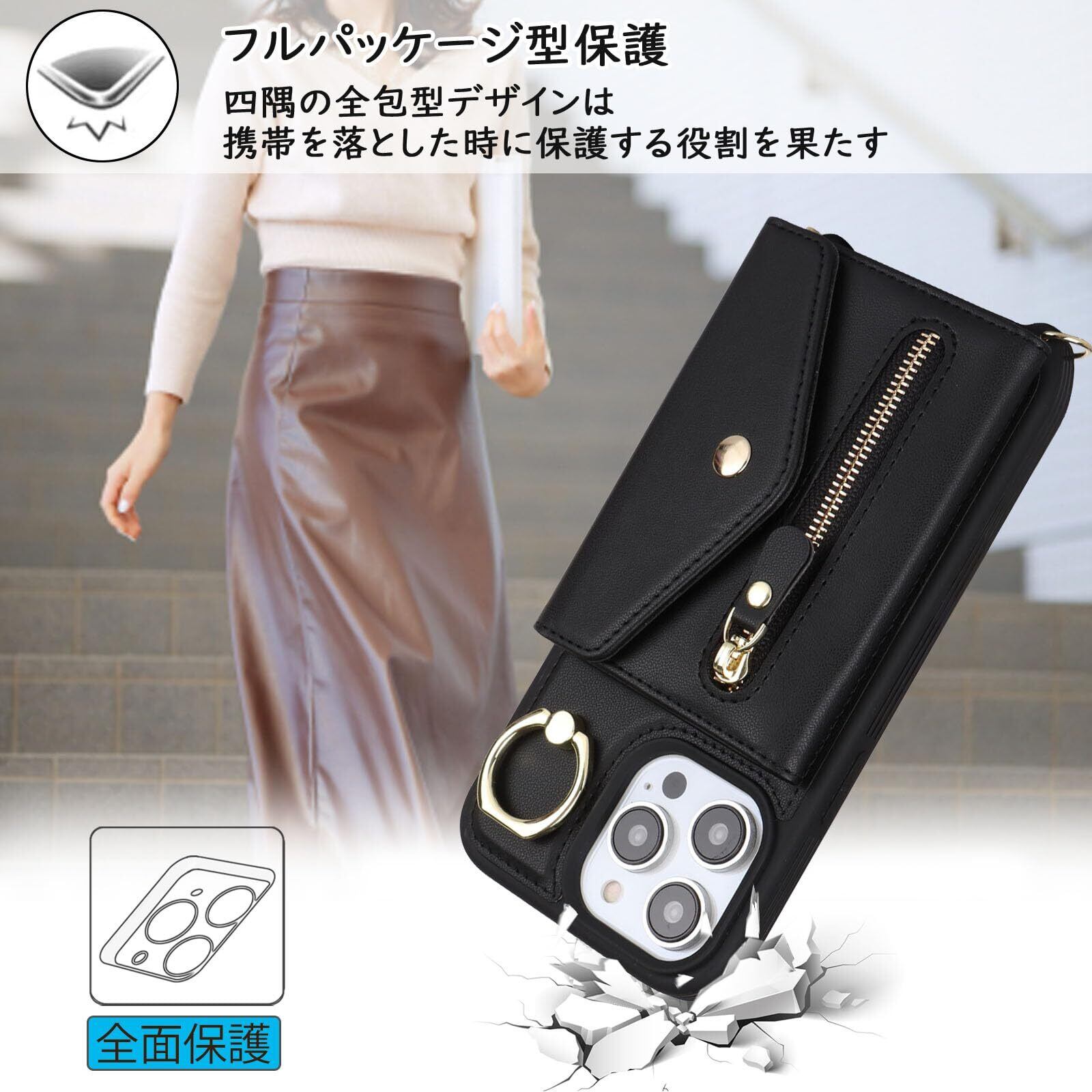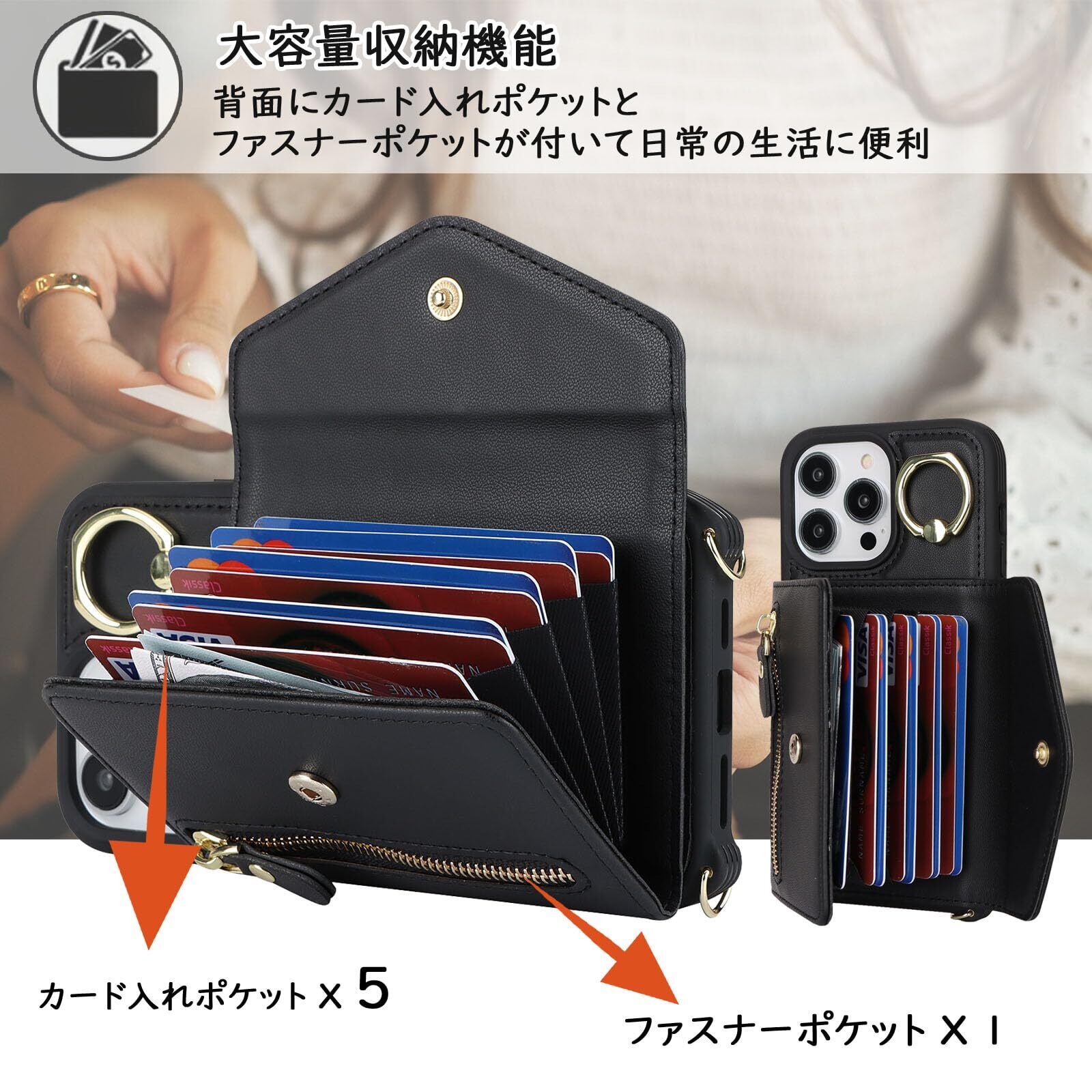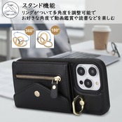 【Hamany】 iphone13promaxケース iphone12pro max ケース ショルダー オシャレ iphone13プロマックスケース カード収納 大容量 リング付き スタンド機能 耐衝撃 全面保護 アイホン12プロマックスケース 肩掛け 斜めかけ カバー -Hamany-ブラック | hananoki