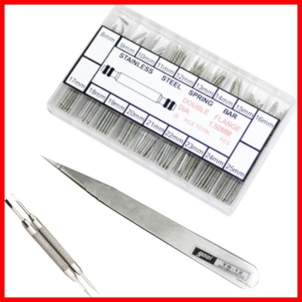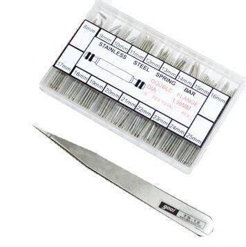 腕時計 ベルト ばね棒 18サイズ セット (8mm-25mm) ピンセット + バネ棒はずし 2本付 ご注意ください フタをあける際、ラベルが底面側に貼られている場合があります。確認しながら、慎重にお開けください。