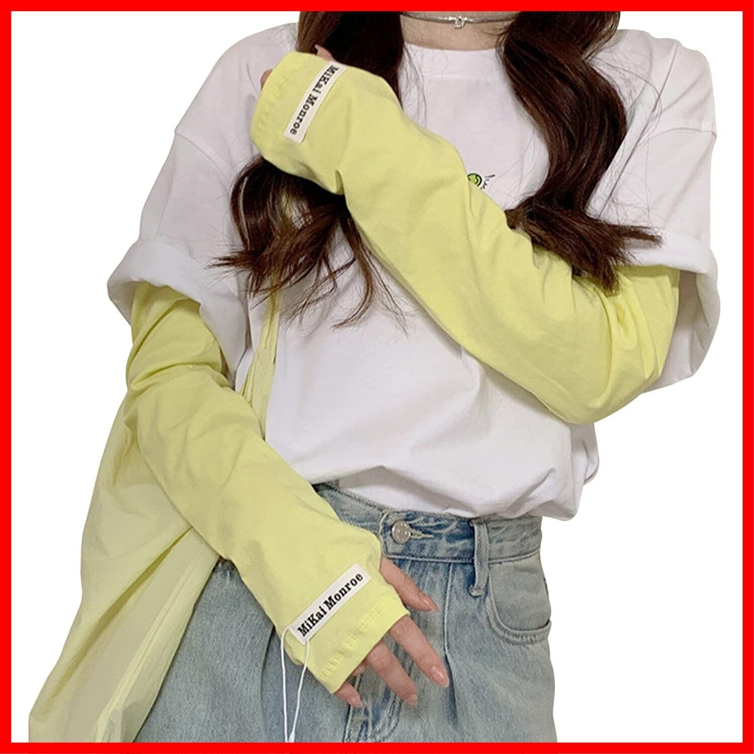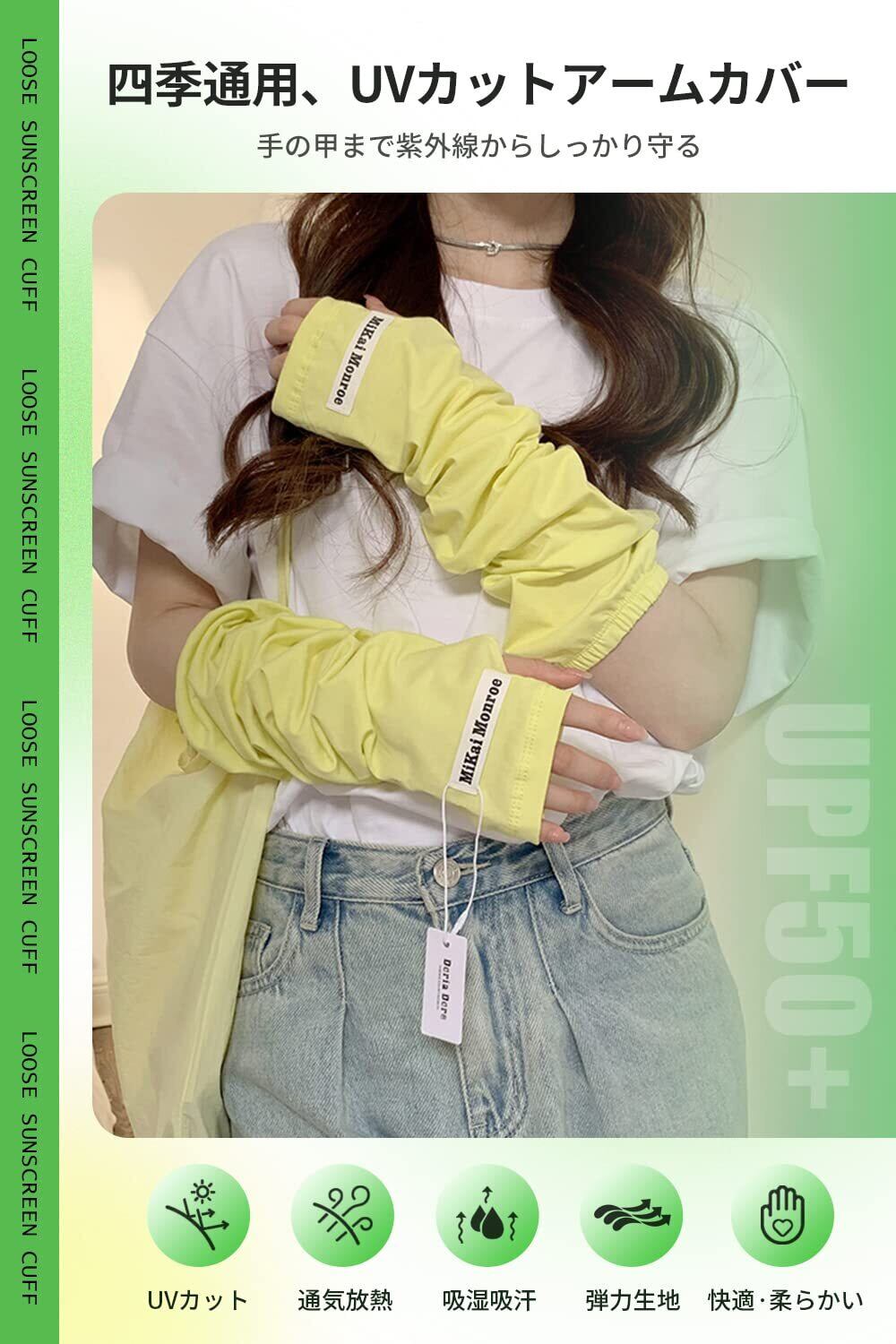 アームカバー レディース UVカット 夏 日焼け防止 アームスリーブ【UPF50+・紫外線対策・ゆったり・手の甲までカバー・】レディース UVカットアームカバー 日焼け止め UV腕カバー 日焼け対策 吸汗速乾 指穴あり ズレ防止 可愛い おしゃれ 蚊避け レディース メンズ 四季 男女兼用 (純色1-イエロー)