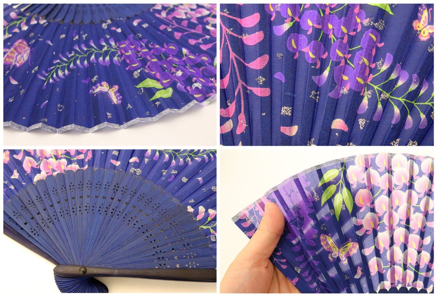 京佑(Kyoyu) 扇子 ケース 袋 入れ セット 和装 和風 和柄 浴衣 シルク 花柄 藤 紫