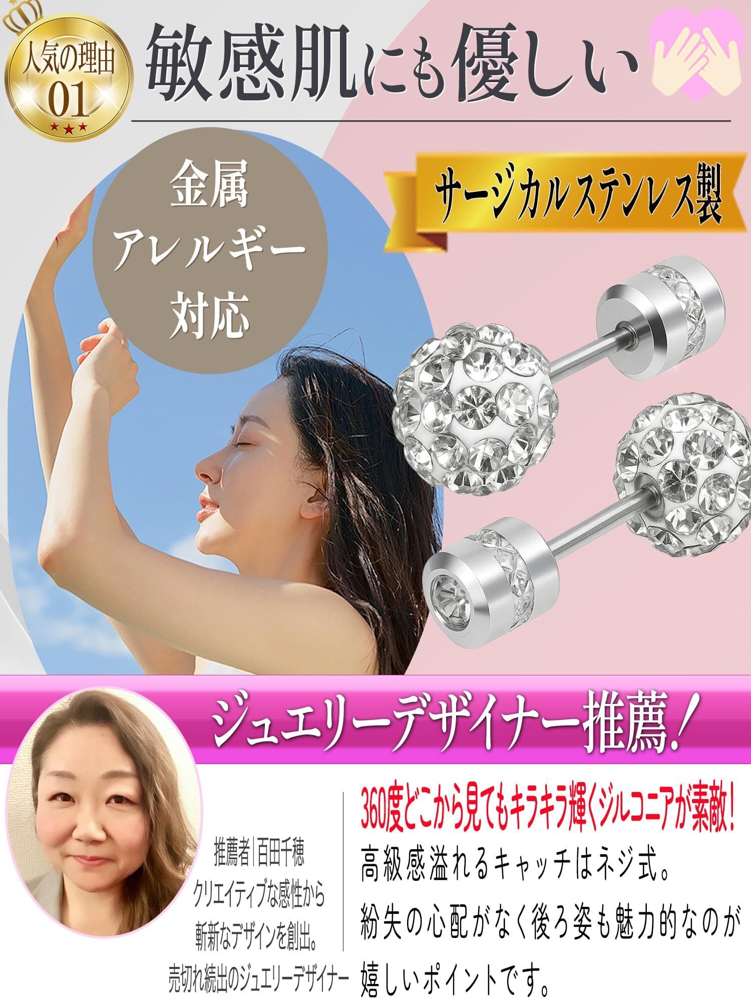ジュエリーデザイナー推薦!つけっぱなしでも快適に使用できる【ピアス】が、サージカルステンレス製で登場しました。【金属アレルギーに配慮した】このピアスは、ファーストピアスやセカンドピアスとしても理想的です。ピアスの【ネジ式】デザインにより、落下しにくく、キャッチ部分が【引っかからない】設計で、日常生活のストレスを軽減します。【俵型キャッチ】はつまみやすく、取り外しも簡単です。 デザインは【星空のような輝き】を持ち、どんな場面でもスタイリッシュに決まります。【メンズ】【レディース】問わず使いやすく、【つけっぱなし】でも快適にお使いいただけます。両耳用の2個セットでの販売も行っており、さまざまなシーンに対応します。 さらに、【サージカルステンレス】を使用しているため、日常の汗や水に強く、錆びにくいのが特徴です。これにより、長期間にわたり美しい状態を保ち、日常使いに最適です。キャッチ部分が【引っかからない】ため、服や髪の毛に絡まりにくく、快適に使用できます。 このピアスはデザインと機能性を兼ね備えており、さまざまなシーンで自信を持って使用できるアイテムです。使いやすさとスタイルを両立したピアスをお探しの方にぜひおすすめしたい一品です。