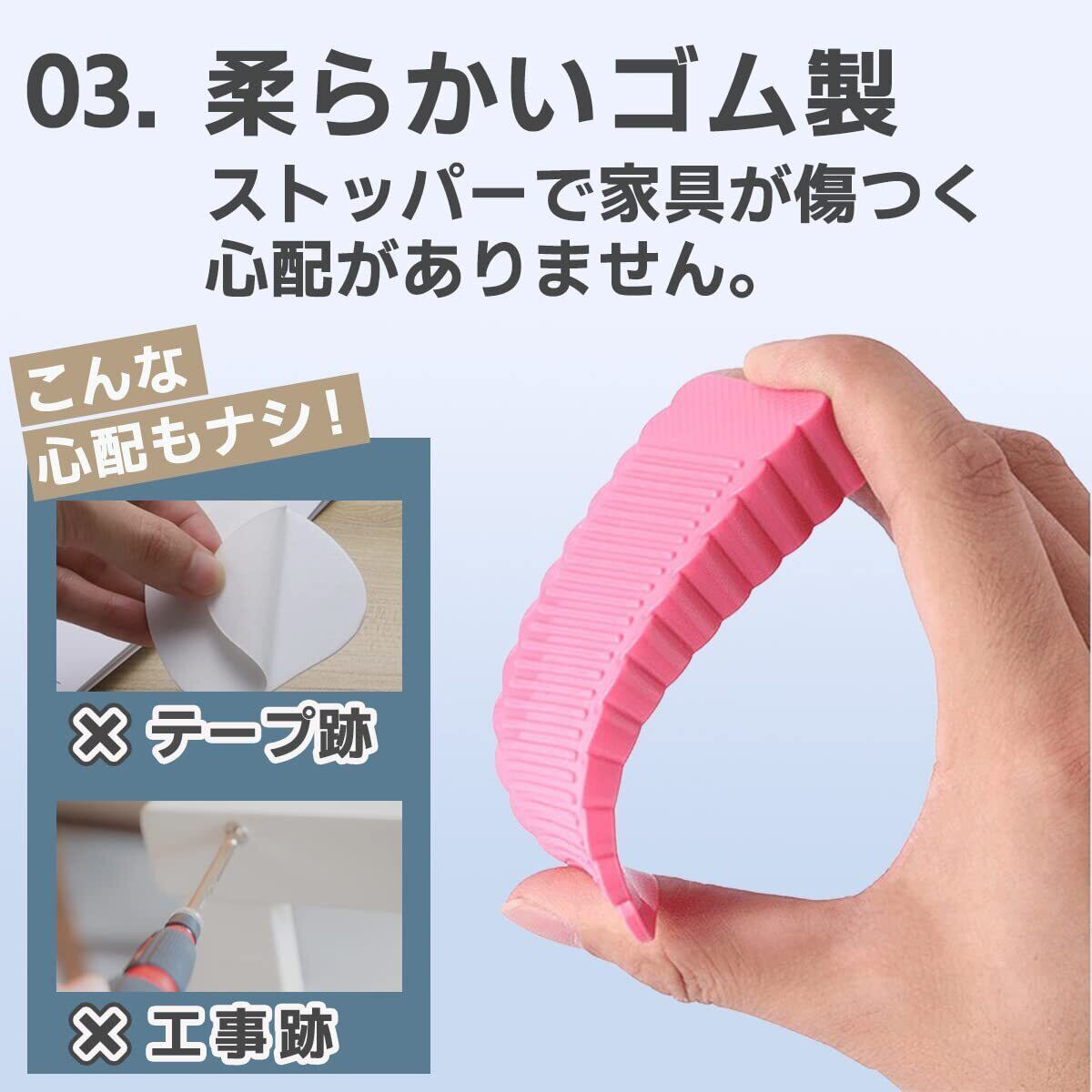 【ゴム製でドアを傷つけない】挟むだけなので、粘着テープ式や工具で設置するタイプの様に、粘着剤の跡が残ってしまったり、大切な家具を傷つけてしまう心配がありません。柔らかい樹脂製なので、使用中の傷も防げます。