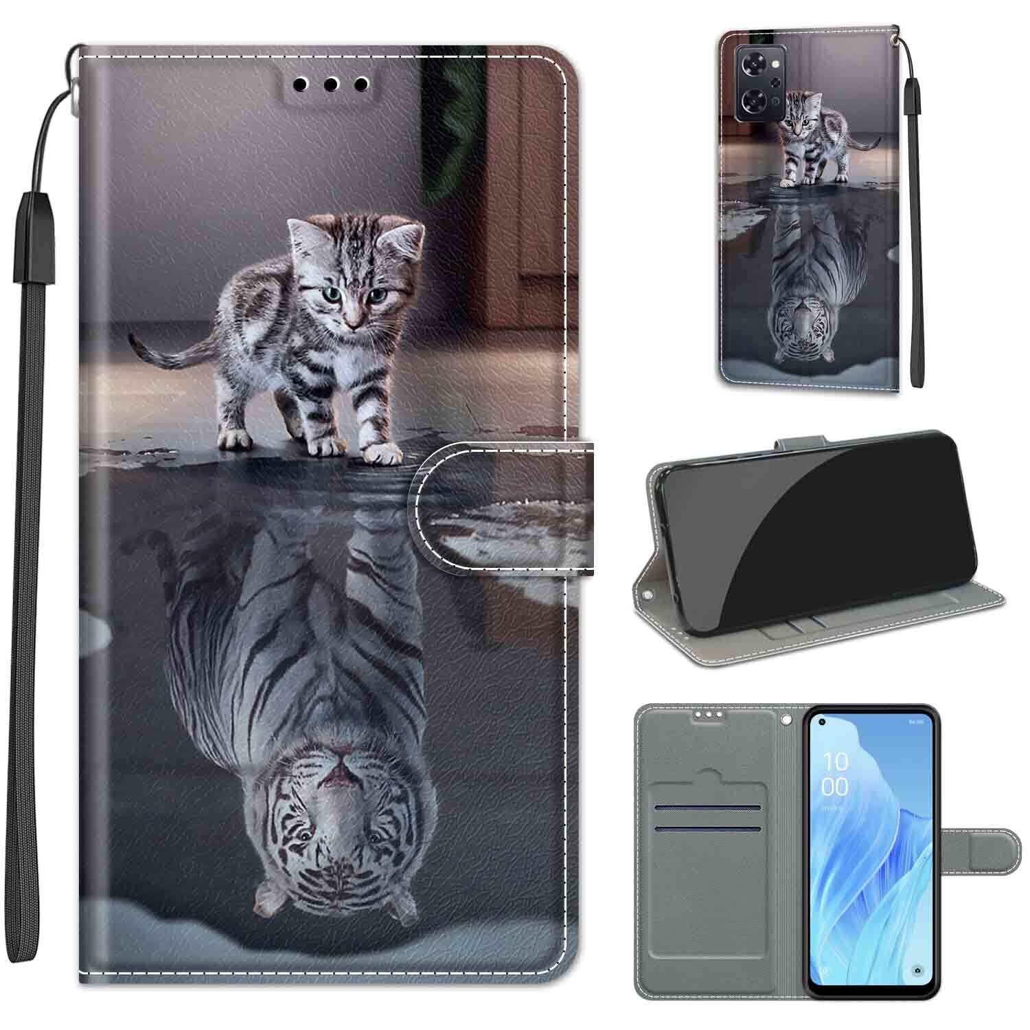 【oppo reno7a 9a 手帳型 ケース】対応 oppo reno7 a ケース 手帳型 おしゃれ 肌感レザー oppo reno9 a ケース 手帳型 内蔵マグネット 耐衝撃 oppo reno7a スマホケース カード収納 スタンド機能 おっぽ スマホ reno7 a reno9 a ケース 全面保護【6.4インチ】 (猫と虎)