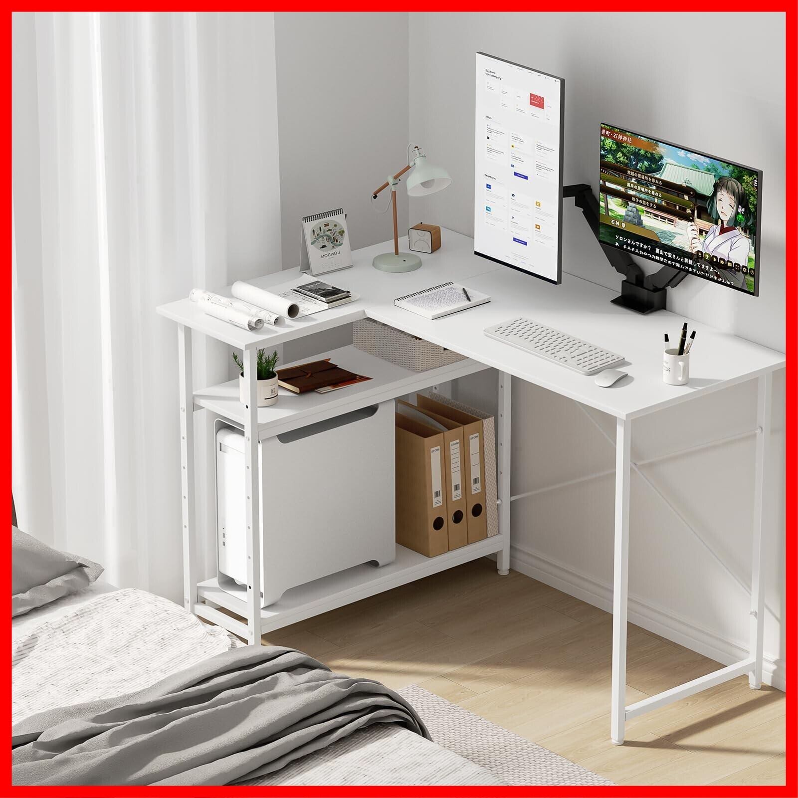 pcデスク l字デスク パソコンデスク 幅110cm 机 pcデスク 左右両替対応 コーナー 棚板高さ5段可動 ワーク 省スペース 書斎 ゲーミング オフィス シンプル L字型 作業机 勉強机 リモートワーク 棚付(ホワイト)