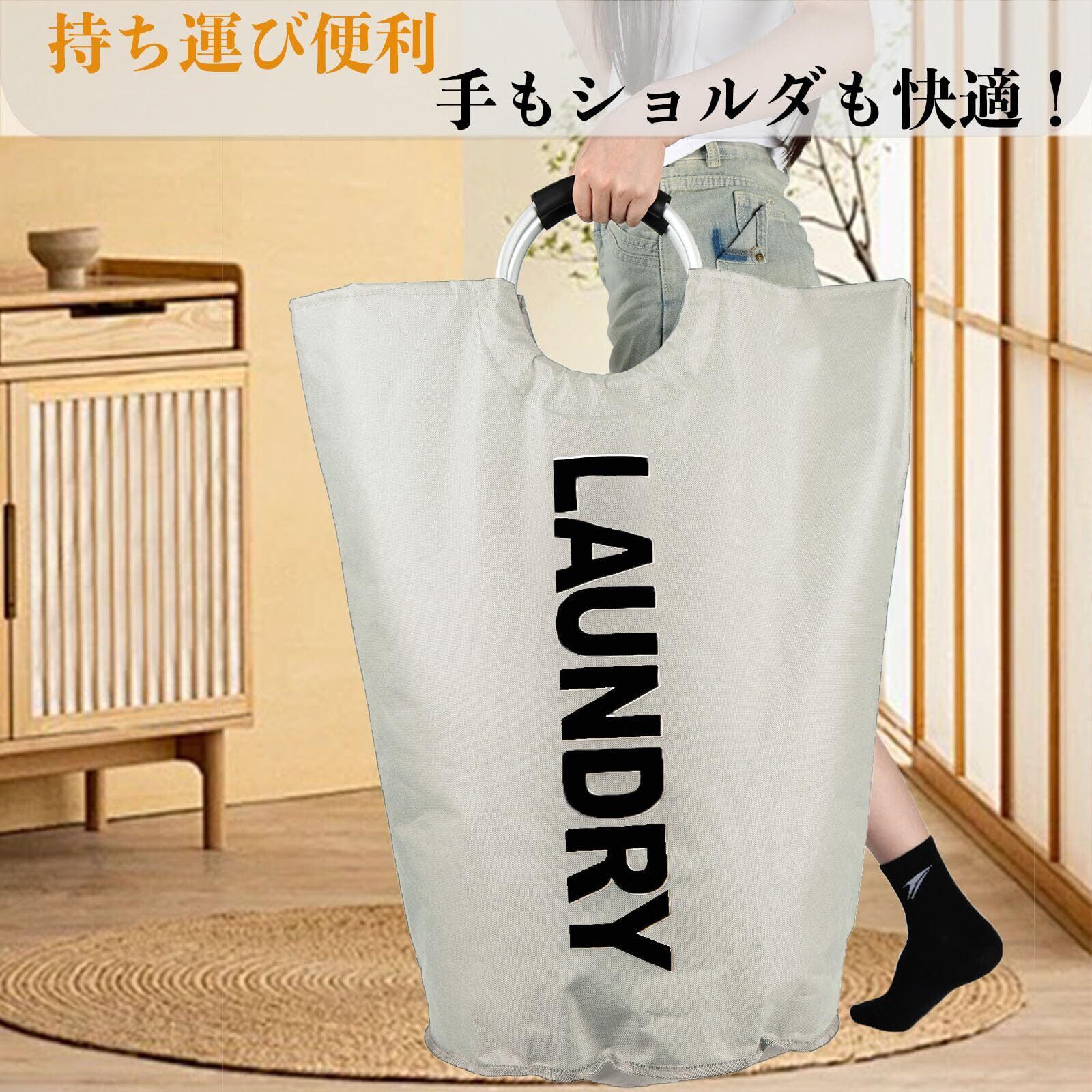 ランドリーバスケット 115L大容量 600D防水オックスフォード 洗濯カゴ 折りたたみ ランドリーバッグ 耐荷重15KG 洗濯物入れ 衣類収納 寝室/リビング/クローゼット 幅43×高さ79(cm) (115L、ベージュ) | hananoki