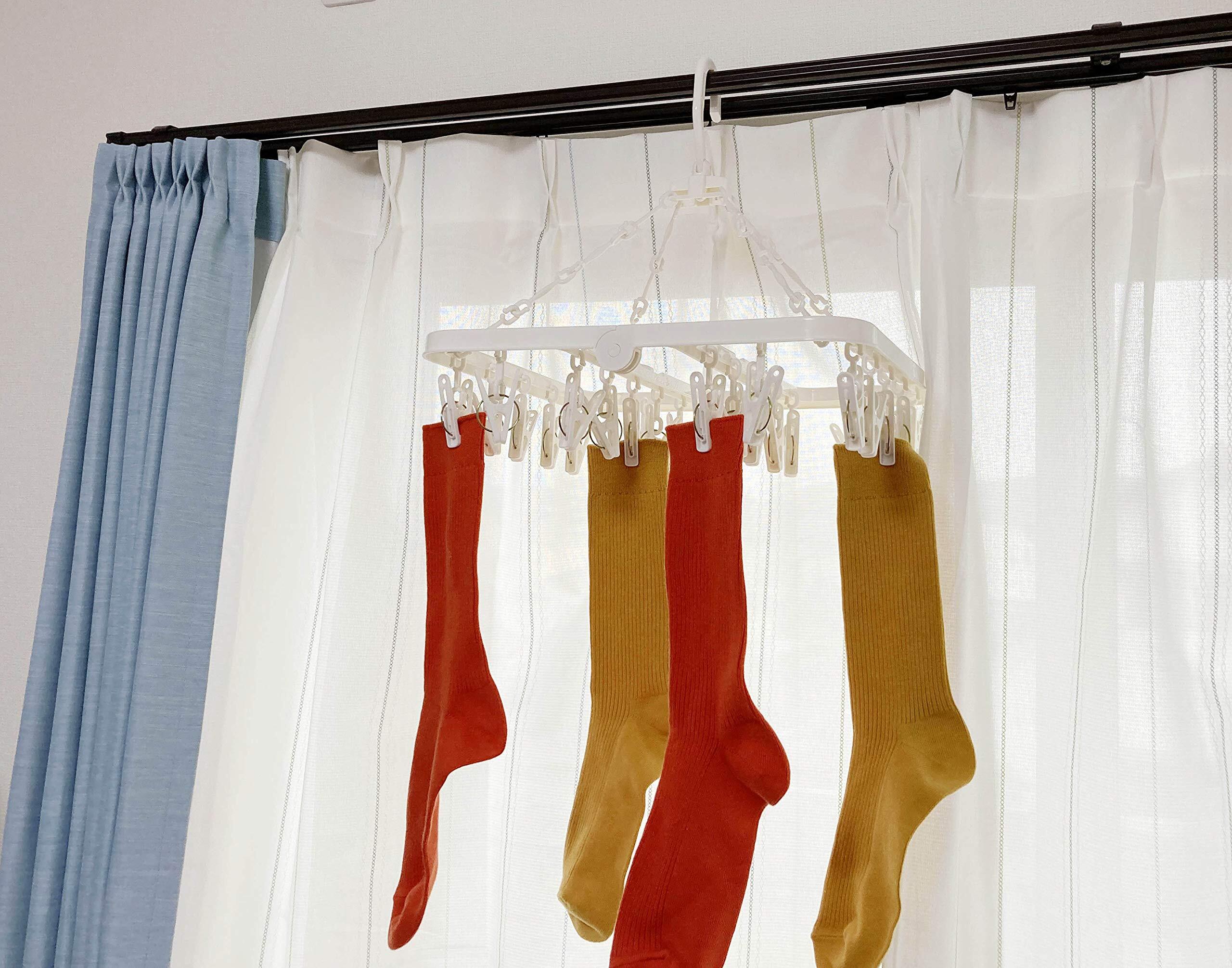 チェーンフックなので、場所に応じて水平に干すことが可能。