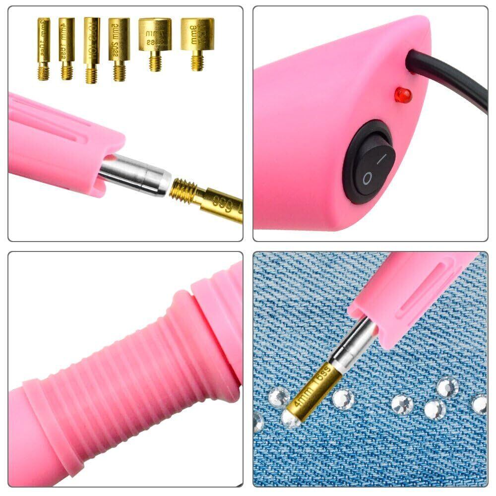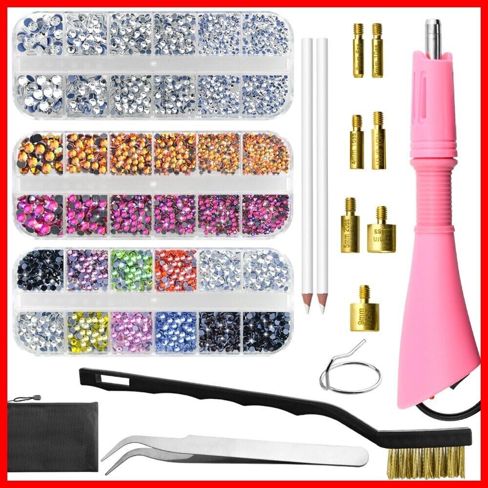 Bedazzlerキット、ラインストーン付き、ホットフィックスアプリケーターツール、ダイヤモンドペインティングペン、7つの異なるサイズのチップ、ピンセット、ブラシクリーニングキットDIY衣類シューズ用(ピンク)