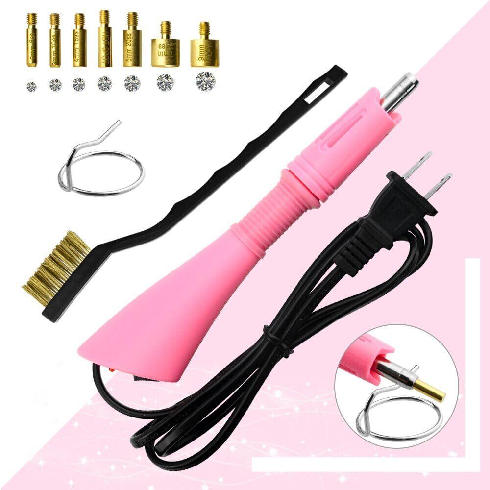 Bedazzlerキット、ラインストーン付き、ホットフィックスアプリケーターツール、ダイヤモンドペインティングペン、7つの異なるサイズのチップ、ピンセット、ブラシクリーニングキットDIY衣類シューズ用(ピンク) | hananoki