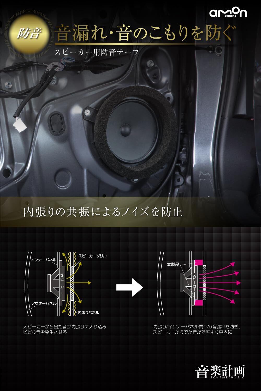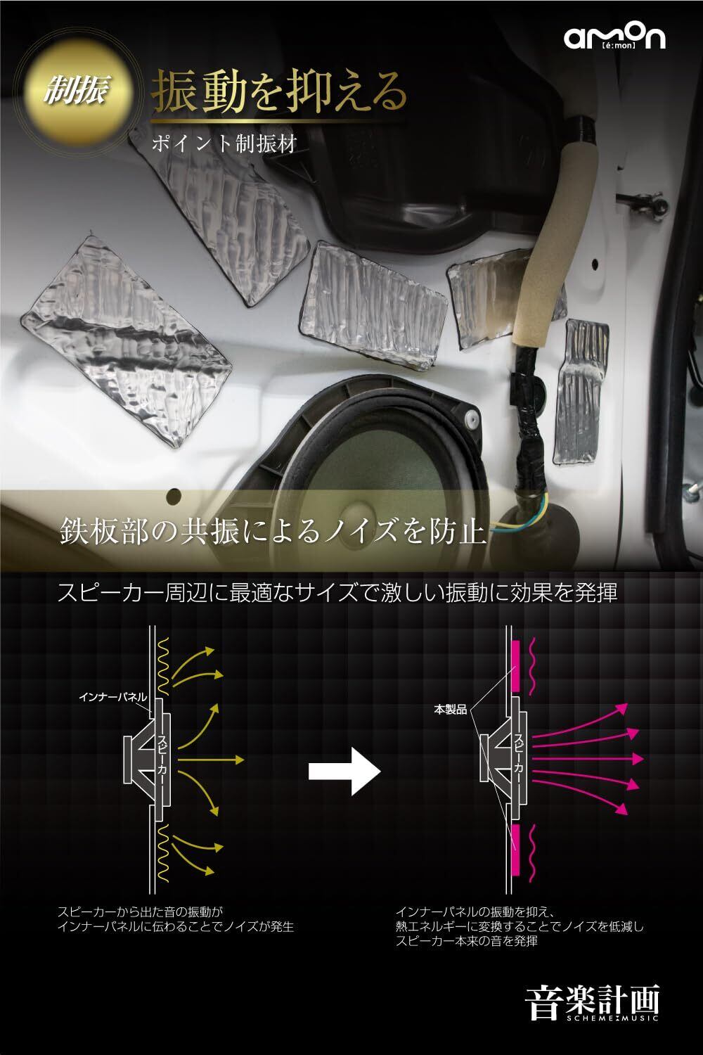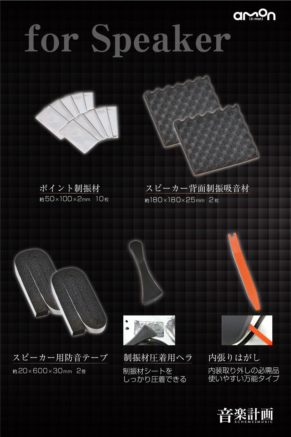 エーモン(amon) 音楽計画 デッドニングキット スピーカー周辺簡単モデル 振動を抑える ノイズを防止 音漏れ・音のこもりを防ぐ 吸音 防音 左右ドア2枚分 4800 制振材増量+内張りはがしセット