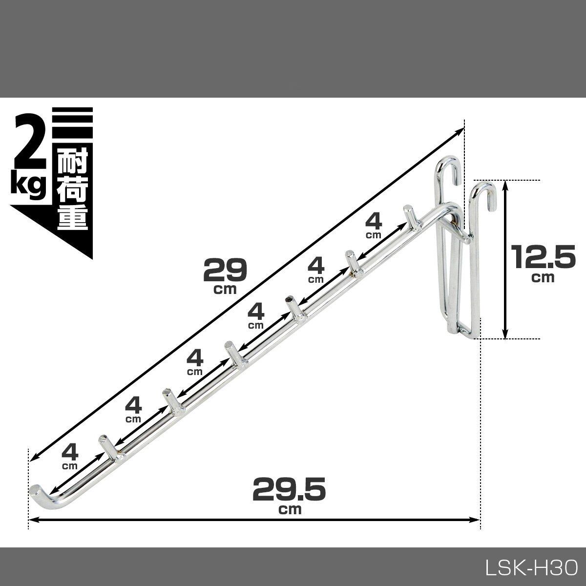 ドウシシャ ルミナス ラック スチールラックパーツ 傾斜ハンガー 長さ30cm 7連フック 吊り下げ収納 吊りフック 頑丈 耐荷重約2kg ちょい掛けに便利 洋服掛け 衣類収納 バッグ収納 ベルト掛け 帽子掛け LSK-H30