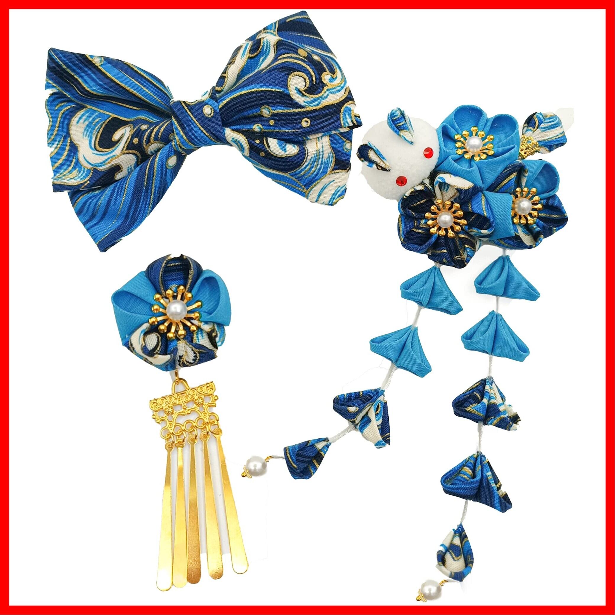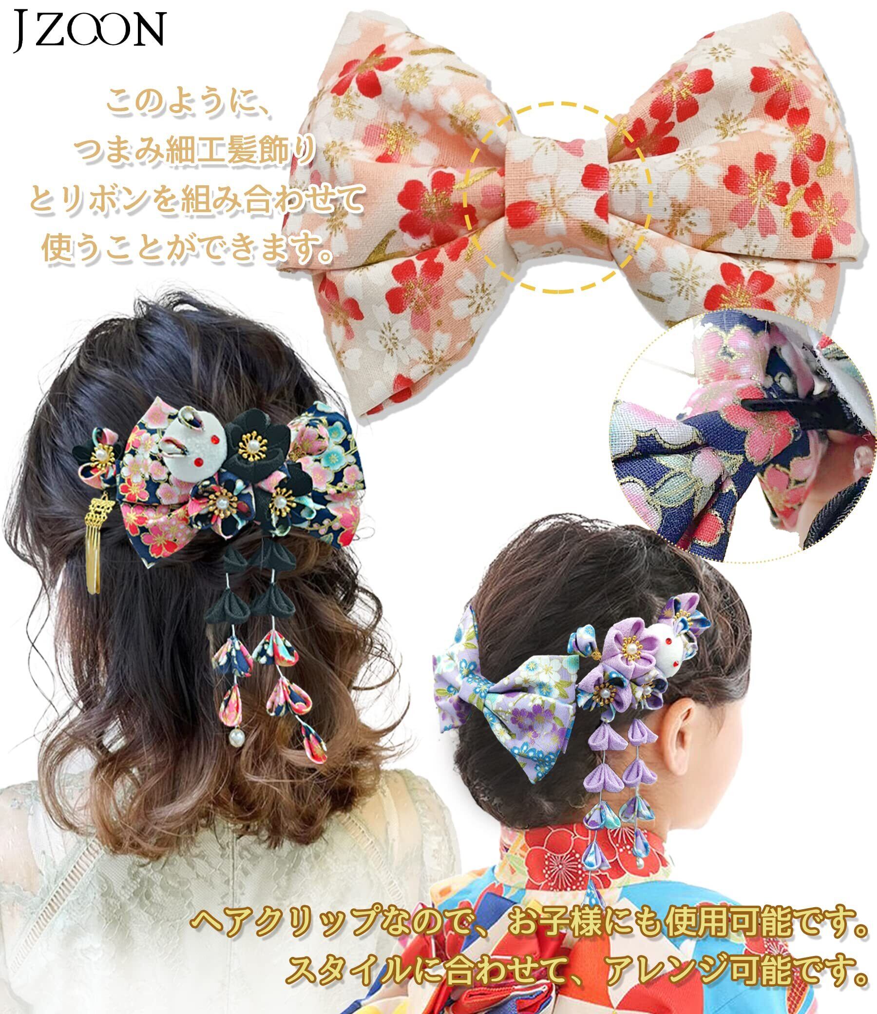 【人気満点】和柄のちりめんが柔らかい印象の温かみを与えてくれます。人気なリボン、生き生きしたお花、風と揺らり動くブラ飾り、ピカピカ金属製のタッセル、卯年を代表する可愛いウサギなど、ファッション要素たっぷり集まった髪飾りセットです。クリップ付きで、髪に優しく、使用便利です。