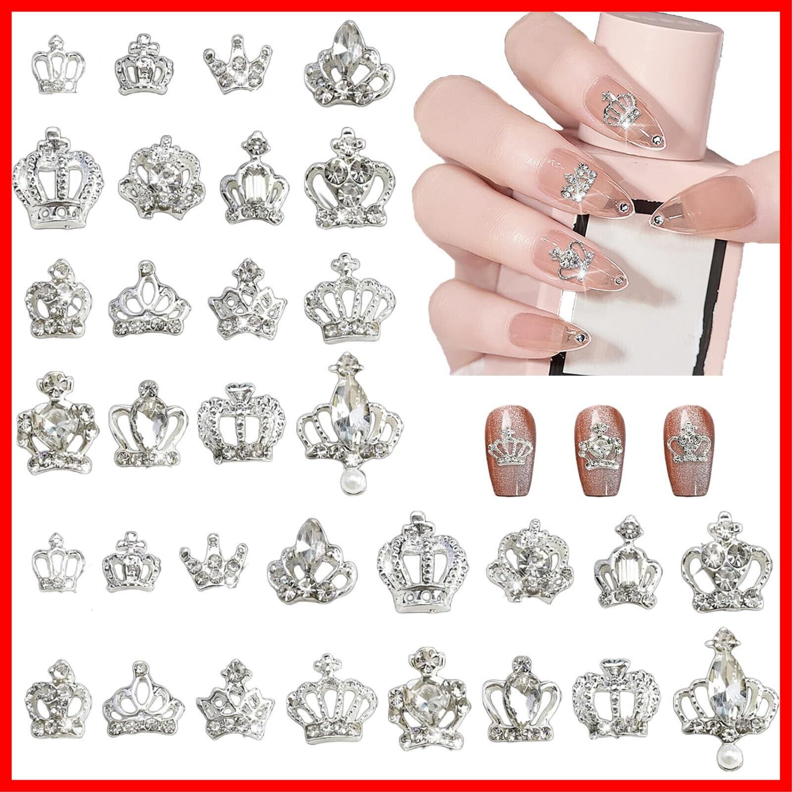 ネイルパーツ 王冠 3D立体 クラウン 32個セット デコパーツ キラキラ 大きめ クラウン ネイルアート ジュエリーパーツ ハンドメイド ネイルアート デコパーツ DIY 手芸 デコパ ーツ (シルバー)