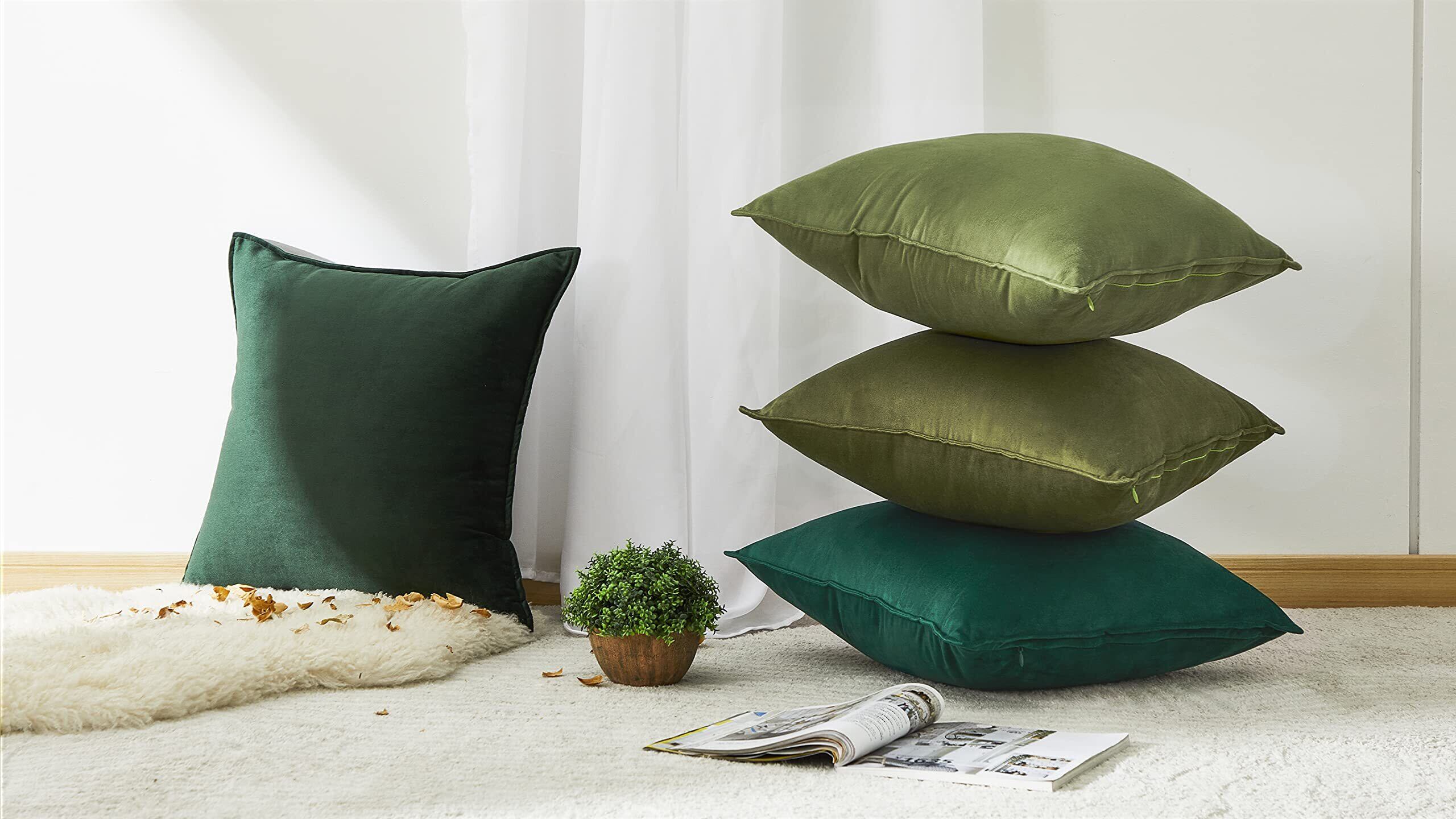 Topfinel クッションカバー 45×45cm 4枚セット グラデーション おしゃれ 北欧 ベルベット 洗える 無地 グリーン