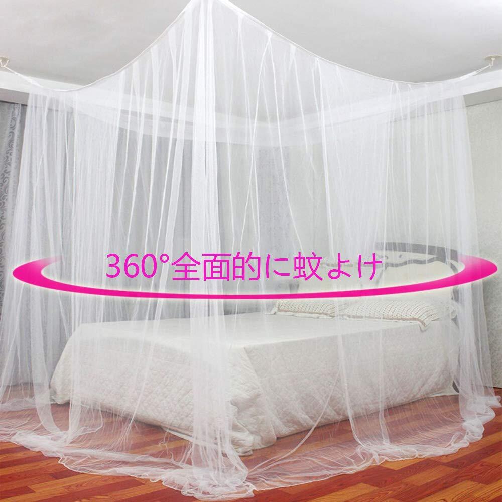 蚊帳 アップグレード美しいデザイン 四つ入口 昆虫を防ぐ 大人用赤ちゃん用 敷物ライフ 蚊帳 かや 6畳 吊り下げ用 ダブル 190*210*240cm (ホワイト)