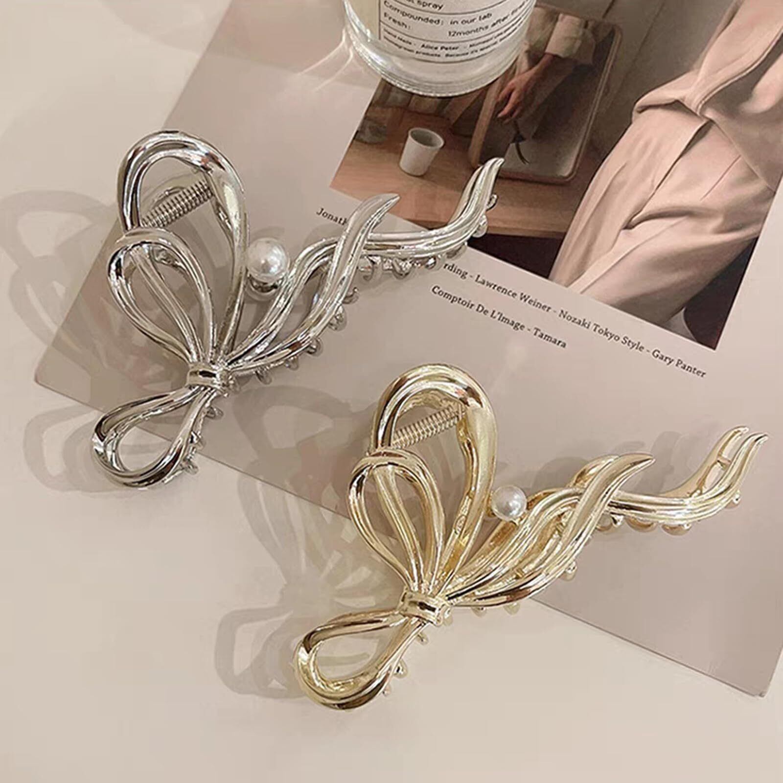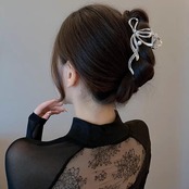バンスクリップ ヘアクリップ オフィス シンプル ヘアアクセサリー 髪留め 人気 韓国風 おしゃれ 贈り物 レディース用 大きめ オフィス 髪飾り クリップ (シルバーリボンデザイン)