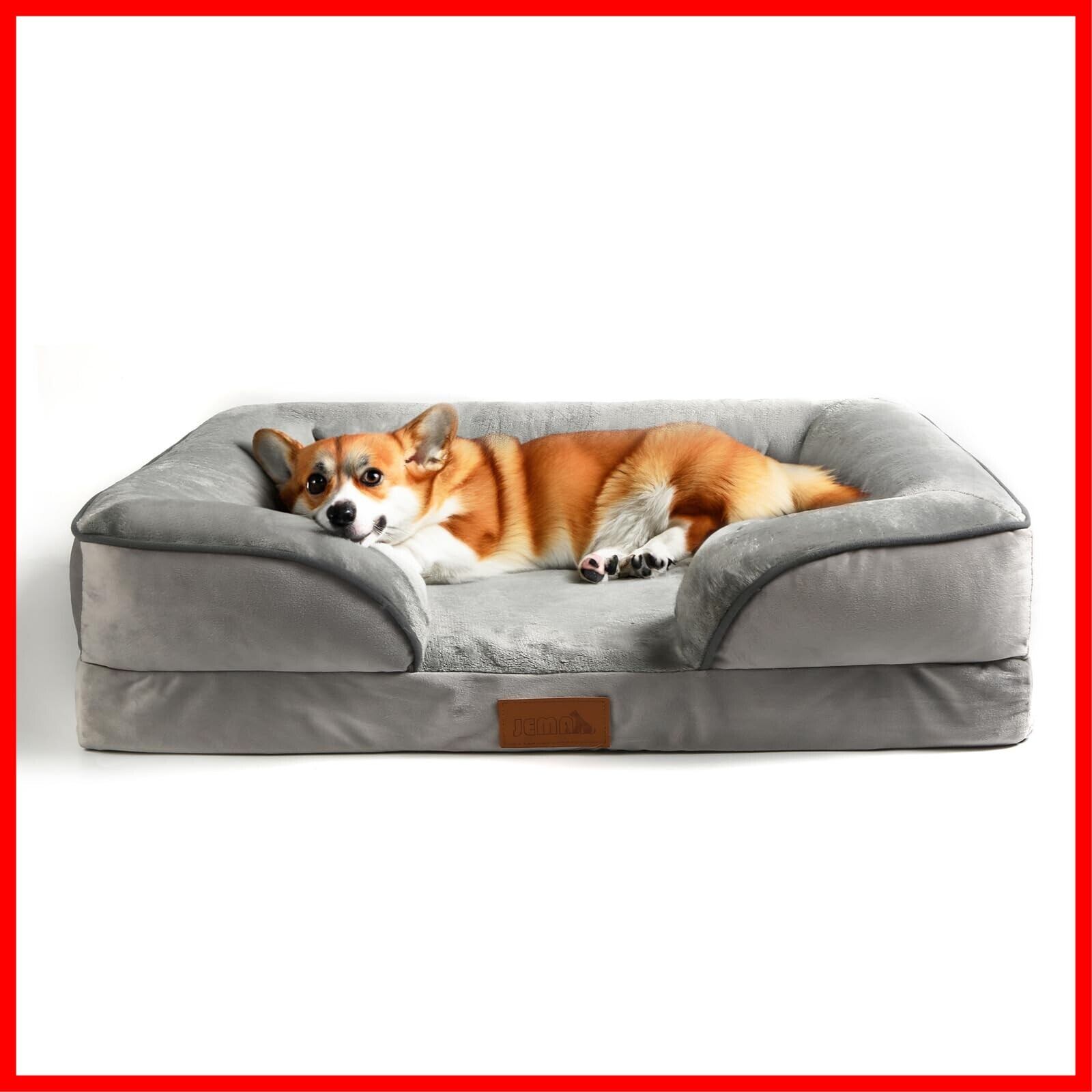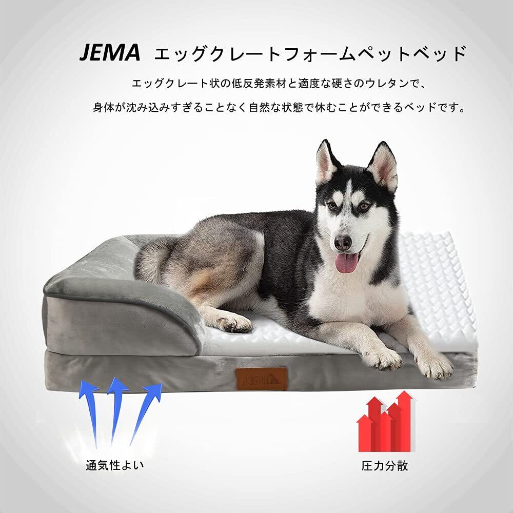 JEMAジェマ ペットクッション 犬ベッド ペットベッド ペットソファーベッド 洗える ふわふわ 枕付き 犬寝床 防水 滑り止め 老犬介護 床ずれ 防止 通年使用 秋冬 中型犬 大型犬 多頭飼い グレー 70*58*17cm