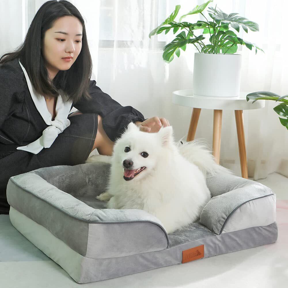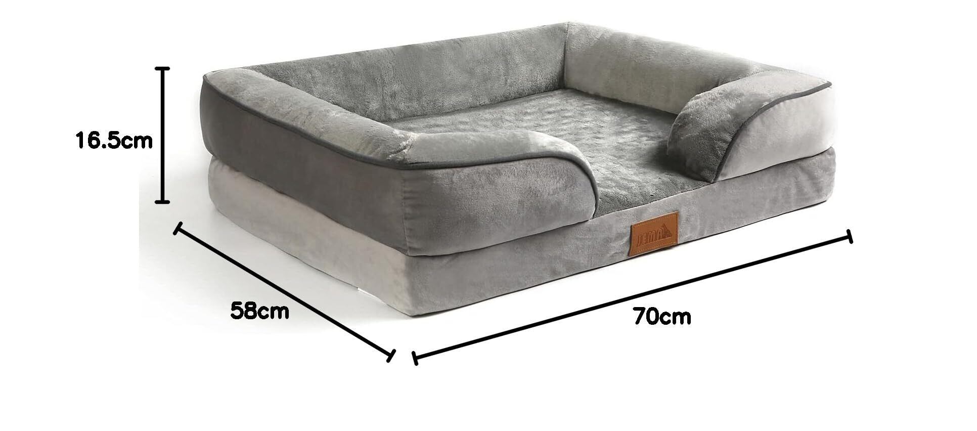 JEMAジェマ ペットクッション 犬ベッド ペットベッド ペットソファーベッド 洗える ふわふわ 枕付き 犬寝床 防水 滑り止め 老犬介護 床ずれ 防止 通年使用 秋冬 中型犬 大型犬 多頭飼い グレー 70*58*17cm | hananoki