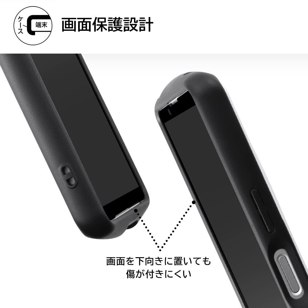 カメラを護る超厚設計。衝撃をやわらげるTPU×鉛筆硬度3Hで傷に強いポリカーボネイト。ケース上部と下部は衝撃をやわらげるエアクッション構造。ケース内側は衝撃から端末を護るハニカム構造。画面を下向きに置いても傷が付きにくい。