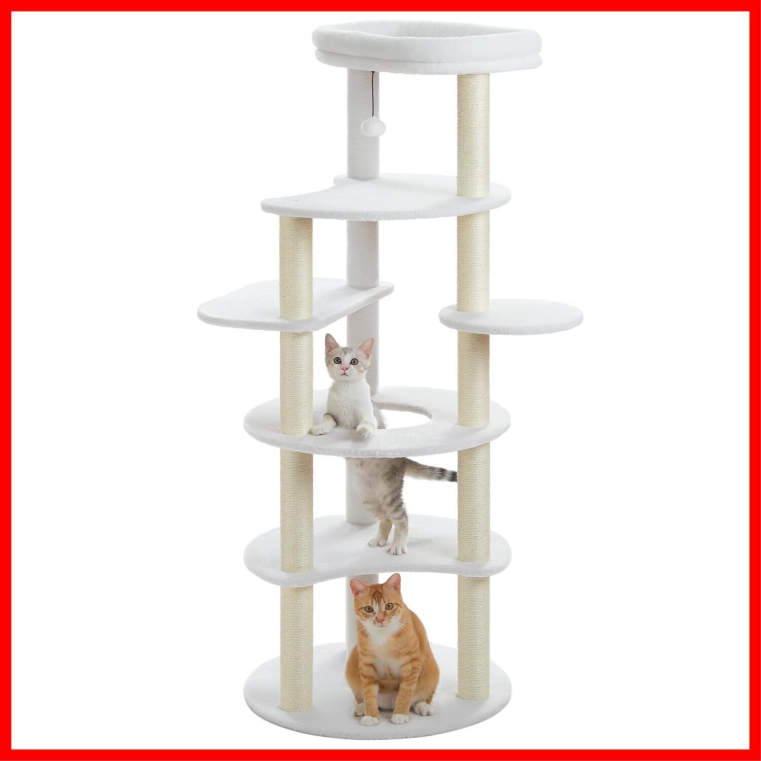PETEPELA(ぺテぺラ) キャットタワー スリム 大型猫用 猫タワー 多頭飼い おしゃれ かわいい インテリア 据置 麻紐 爪とぎ おもちゃ コンパクト 省スペース 人気 運動不足解消 倒れ防止策 - 高さ154cm ホワイト 白 アイボリー | hananoki
